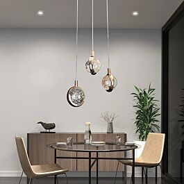 اضاءة معلقة مودرن تتميز بتصميم فريد يجمع بين الأناقة والبساطة، مع هيكل أسود ولمسات بيضاء. الإنارة تعمل بتقنية LED بقدرة 5 واط، مع درجة حرارة لون 3000 كلفن لتوفير إضاءة دافئة ومريحة. يبلغ قطر الاضاءة 30 سم وارتفاعها يصل إلى 150 سم، مما يجعلها مثالية لغرف المعيشة، غرف الطعام، أو غرف النوم. تتميز بمظهر عصري يناسب مختلف الديكورات الداخلية مع تصنيف IP20 المخصص للاستخدام الداخلي.
