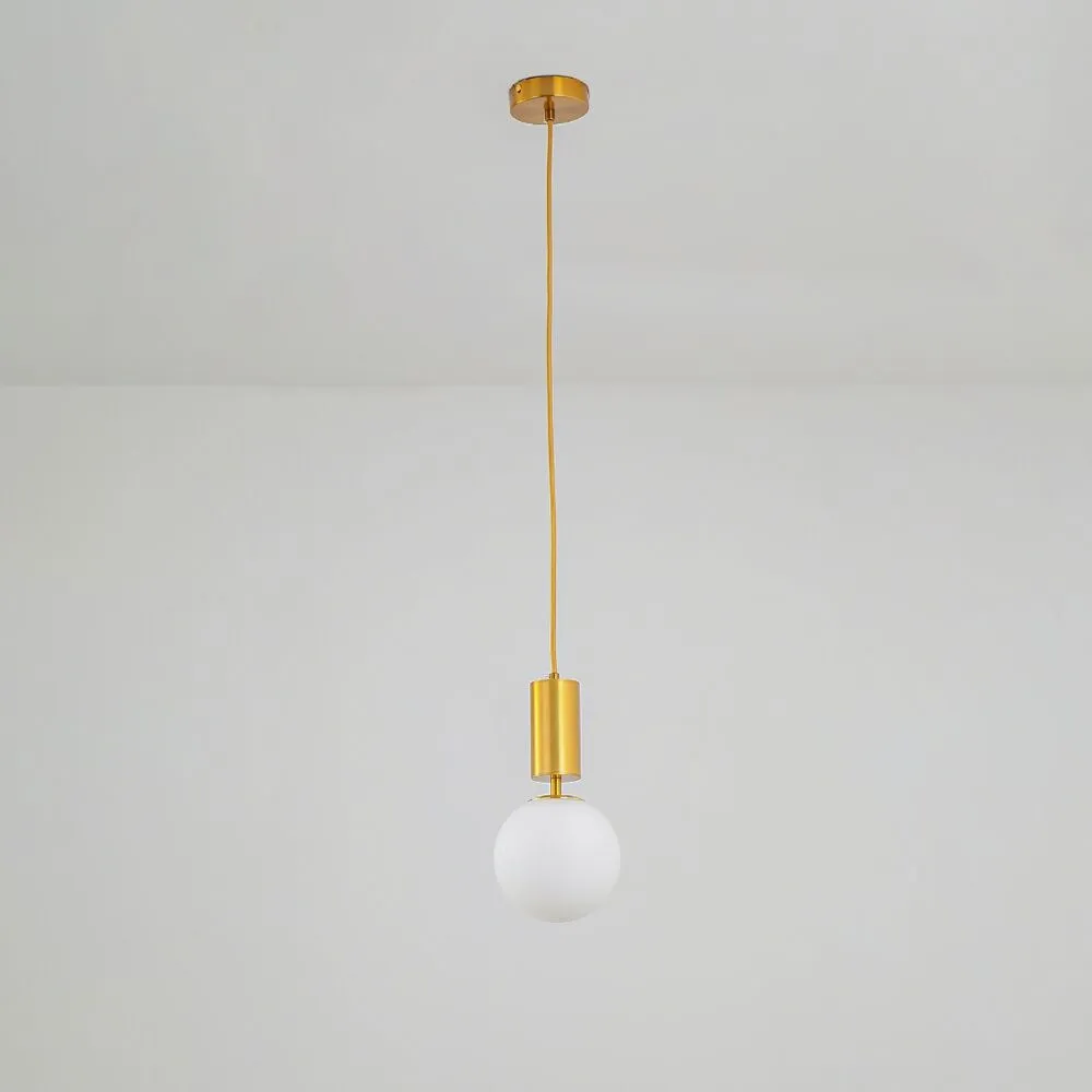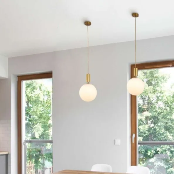 تتميز الإنارة المعلقة باللون الذهبي بأناقتها وجمالها الفريد. تتكون هذه الإنارة من قاعدة وسلك مصنوعين من مادة ذهبية رائعة تضفي جاذبية على المظهر العام للإنارة. تأتي الإنارة مع كرة زجاجية باللون الأبيض تعكس الضوء بشكل جميل وتوفر إضاءة ناعمة ومشرقة في المكان المثبتة فيه. يتم استخدام قاعدة E14 لتوفير سهولة التركيب والتوصيل مع الكثير من أنواع المصابيح المختلفة. هذه الإنارة المعلقة الذهبية هي اختيار مثالي لمن يرغب في إضافة لمسة أناقة وأنيقة إلى أي منزل أو مساحة داخلية.