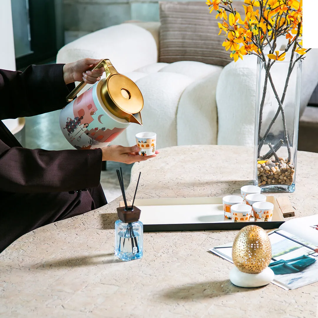 يتميز الزجاج الداخلي بعزلة التام للحرارة و الشكل الخارجي المميز ب أللوان مميزة و حجمها المميز و الأنيق يتيح لك حفظ مشروباتك الساخنة لمدة تصل 8 ساعة للمشروبات الساخنة و 12 ساعة للمشروبات الباردة ف الزجاج الداخلي عالي الجودة والشكل الخارجي مميز مناسب للتقديم في جمعات الأصدقاء و للاستعمال اليومي