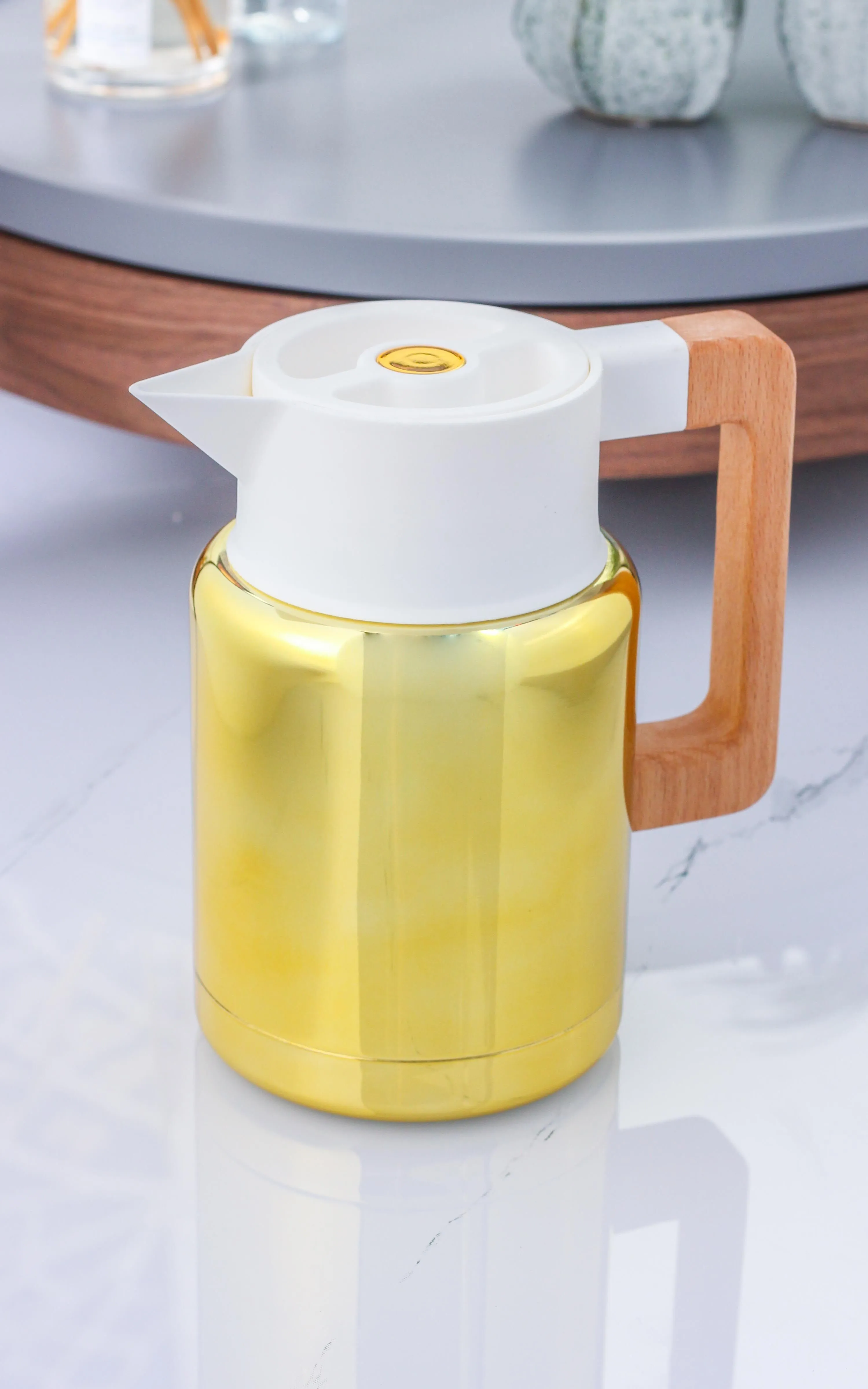 قدم القهوة والشاي بأناقة مع ترمس جيستر ذو التصميم العملي المميز باللون الأبيض مع الذهبي الأنيق, حيث تضمن بقاء مشروبك دافئاً لمدة تصل إلى 12 ساعة وبالتالي يمكنك الاستمتاع بوجبة الفطور أو شرب القهوة في الرحلات الطويلة كما تعد مناسبة لتقديم القهوة والشاي للضيوف في المناسبات والاحتفالات.
