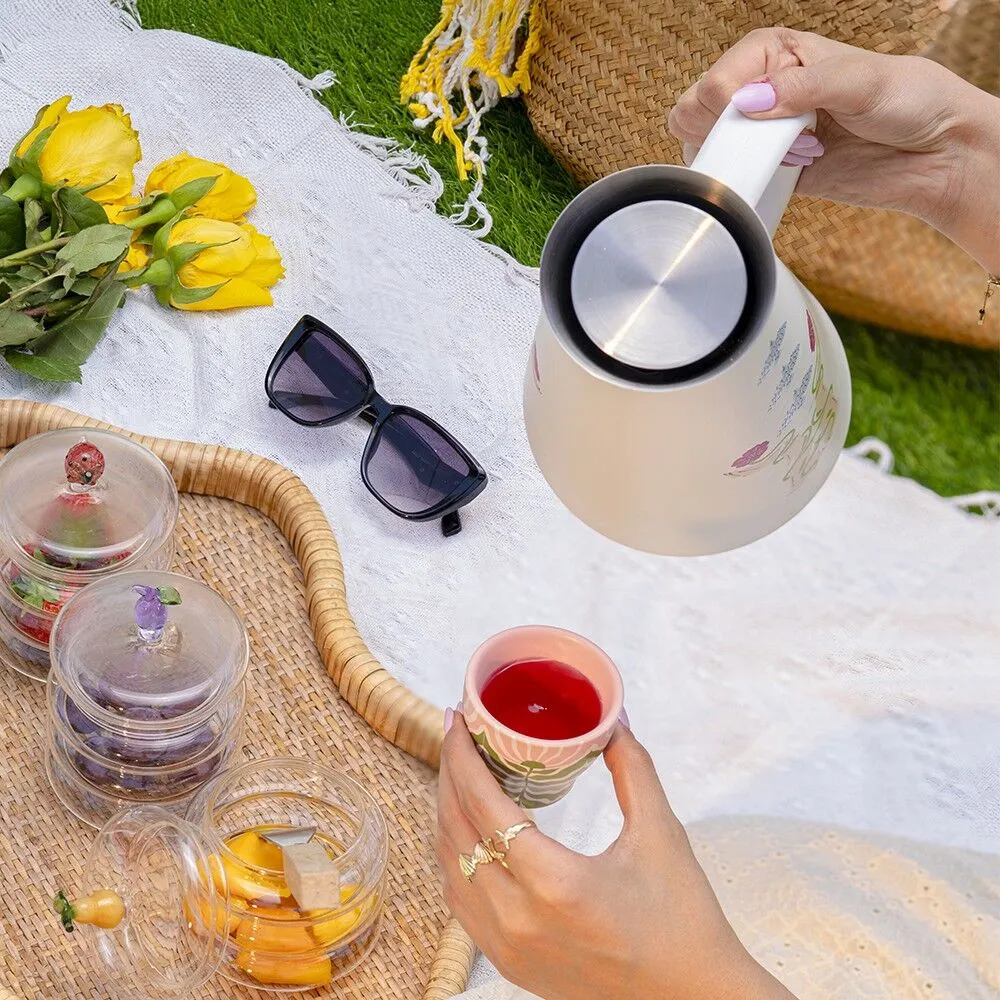 عززي أناقة أدوات تقديم الشاي و القهوة على مائدتكِ باقتناء هذا الترمس الرائع، يمكنه الاحتفاظ بالحرارة لمدة 12 ساعة و 24 ساعة للمشروبات الباردة، مصنوع من خامات عالية الجودة، آمنة للمشروبات، مع فوهة سكب 360 درجة للصب سهل التحكم من أي زاوية ومصمم بمظهر مميز و عصري، مما يجعله اختيارًا أنيقًا وفريدًا
