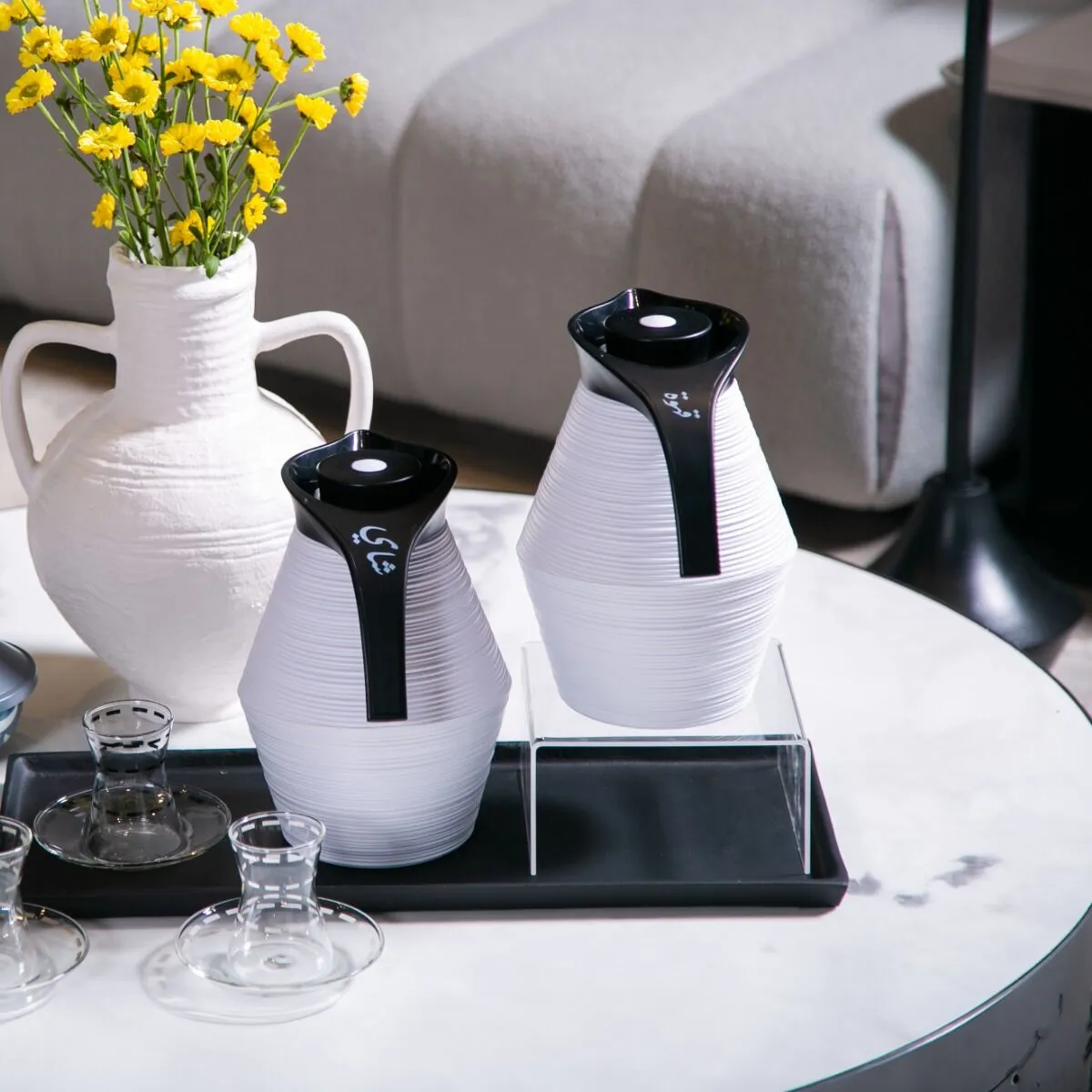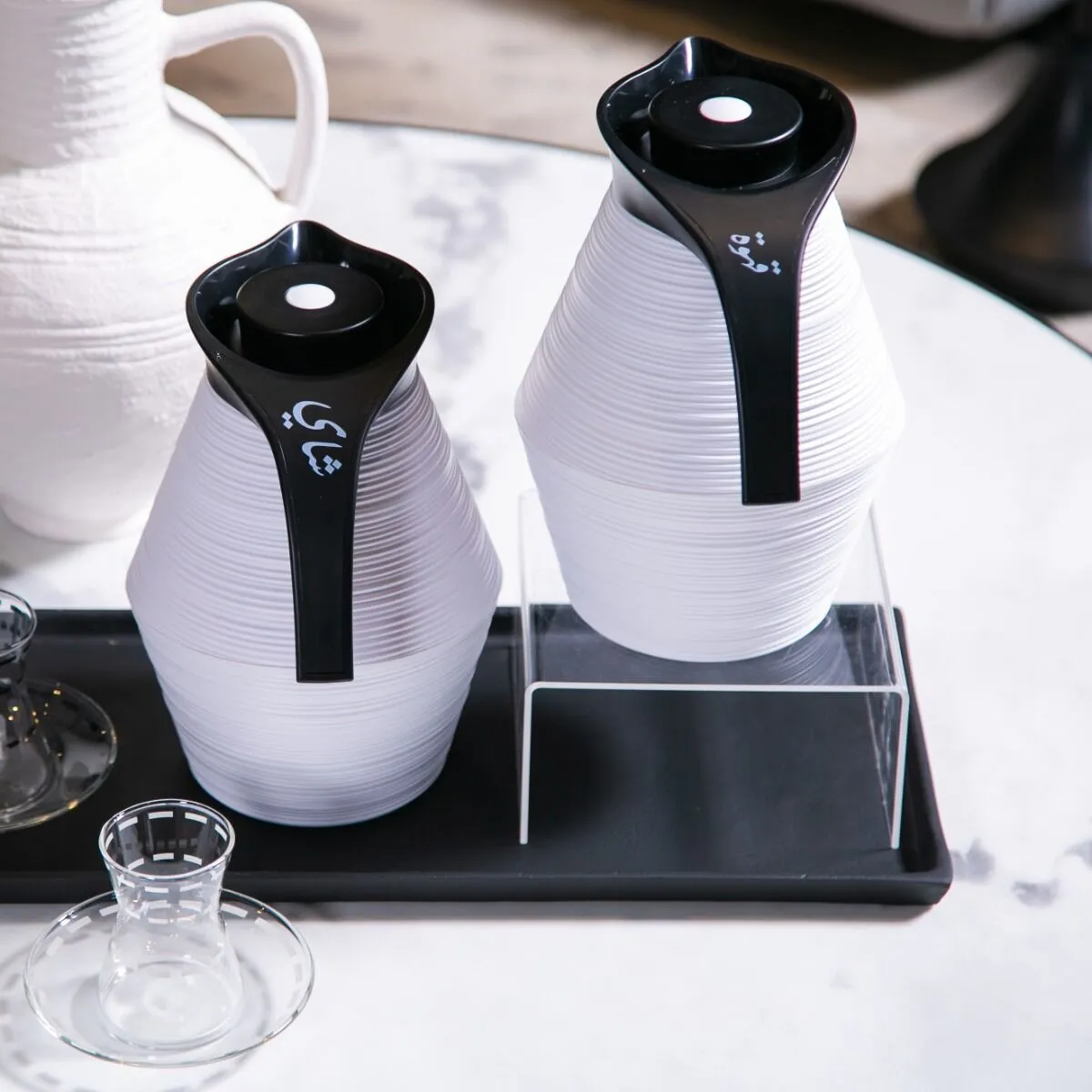 ترمس القهوة من مجموعة نورسين ترمس أنيق يحمل عبارة قهوة المطبوعة باللون الأبيض عليه يجمع بين اللون الأبيض الأنيق والمقبض الأسود، مما يخلق تباينًا جذابًاتم صنع ترمس القهوة باستخدام مواد عالية الجودة، مما يضمن قوته ومتانته يحافظ على درجة حرارة القهوة لفترة طويلة، مما يتيح لك الاستمتاع بكوبك المفضل في أي وقتيأتي ترمس القهوة مع غطاء محكم الإغلاق، مما يحافظ على طعم ونكهة القهوة الأصلية ويمنع التسرب بفضل مقبضه الأسود الأنيق، يسهل حمل الترمس وصب القهوة بسلاسةترمس القهوة، ترمس القهوة هذه العبوة هي الرفيق المثالي لمحبي القهوة، حيث يمكنكم الاستمتاع بقهوتك الساخنة في أي مكان وزمان، وتضفي لمسة أناقة على تجربتك القهوة