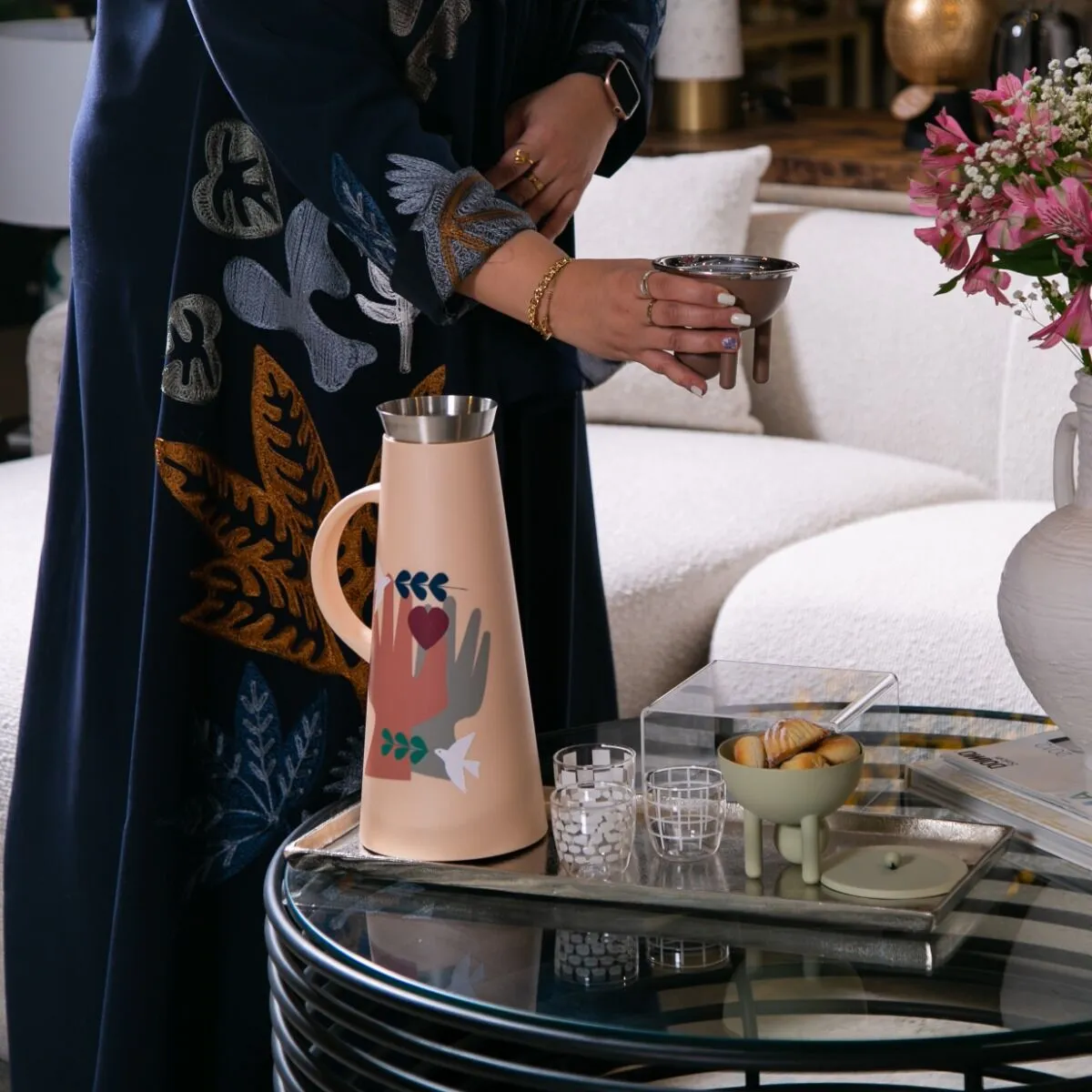 عززي أناقة أدوات تقديم الشاي والقهوة على مائدتكِ باقتناء هذا الترمس الرائع، يمكنه الاحتفاظ بالحرارة لمدة 12 ساعة و24 ساعة للمشروبات الباردة، مصنوع من خامات عالية الجودة، آمنة للمشروبات، مع فوهة سكب 360 درجة للصب سهل التحكم من أي زاوية ومصمم بمظهر مميز وعصري، مما يجعله اختيارًا أنيقًا وفريدًا.