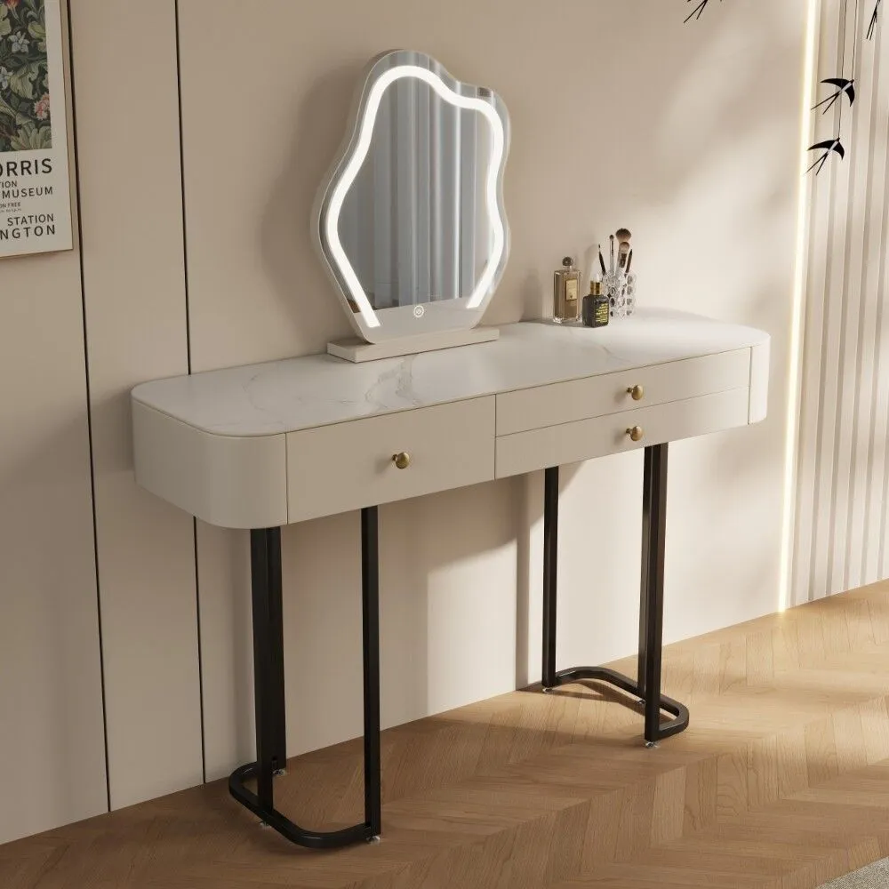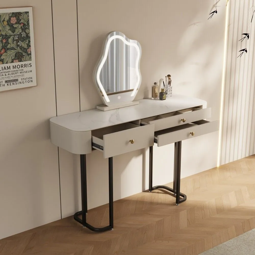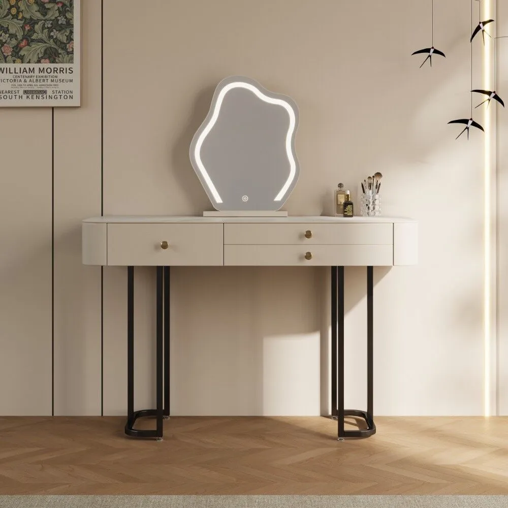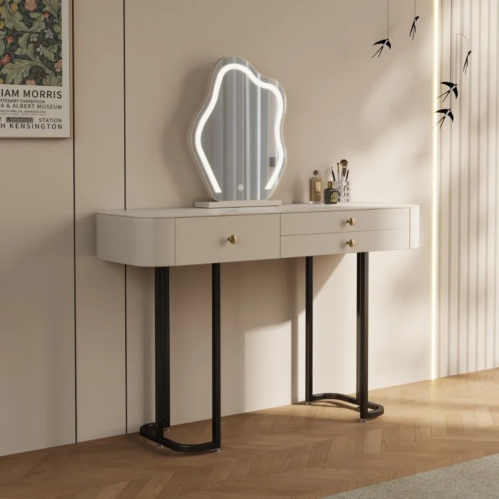 تجمع تسريحة روفيل بين الخطوط العصرية والأناقة الهادئة، لتقدّم قطعة عملية بلمسة فاخرة تناسب غرف النوم الحديثة. تصميمها المتوازن وألوانها الراقية يضيفان إحساسًا بالترتيب والدفء، مع مرآة سحابية بإضاءة ناعمة تعزز تجربة الاستخدام اليومية.