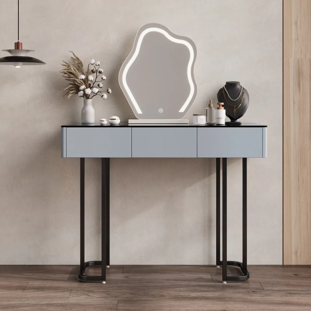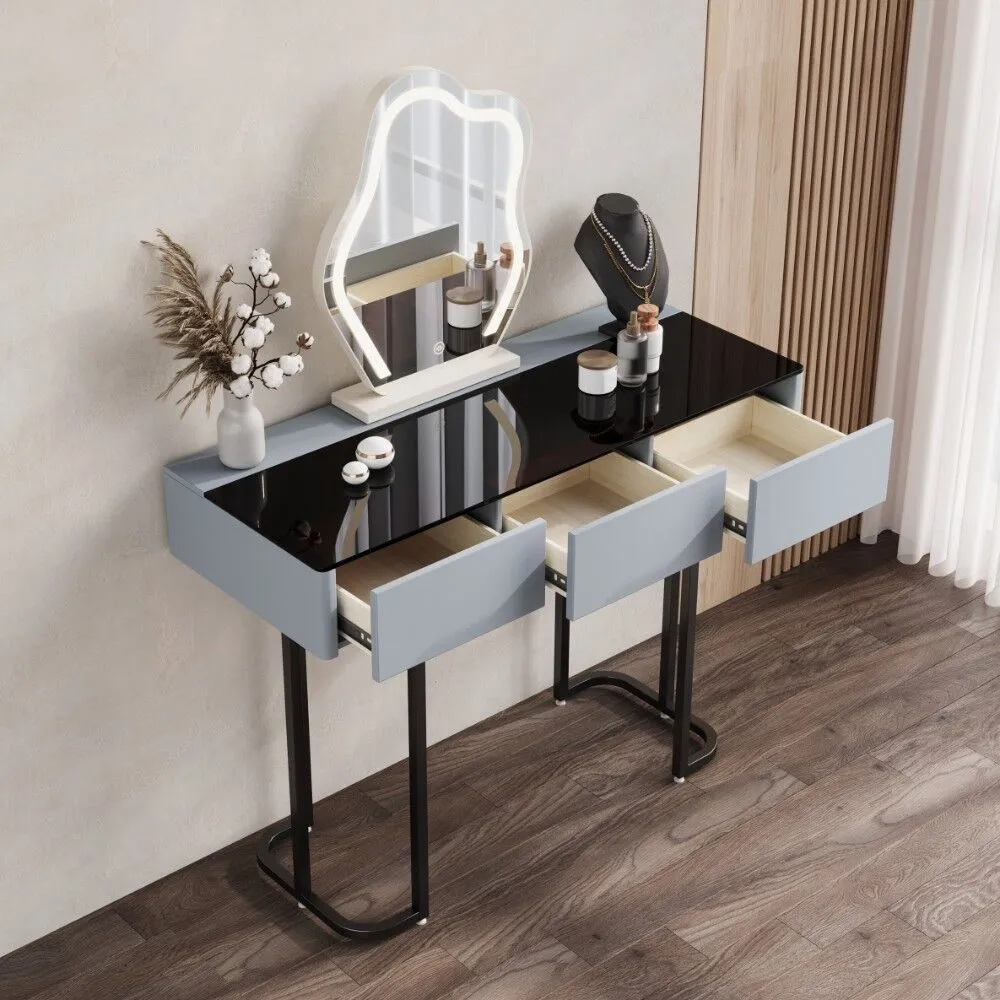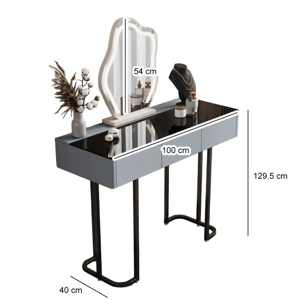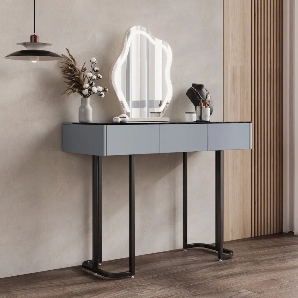 تسريحة مع مرآة فيلا - رمادي واسود..تصميم عصري يجمع بين الفخامة والعملية، صُممت لتكون قطعة مميزة تضيف لمسة راقية لأي مساحة.