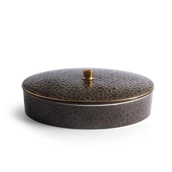 • قدمي التمر أو المكسرات بأسلوب فاخر لإبهار ضيوفك باختيار هذه التمرية مع غطاء بالحجم الكبير وبلون ساحر وأنيق مع تفاصيل مميزة ذات لمسة فخامة عالية.