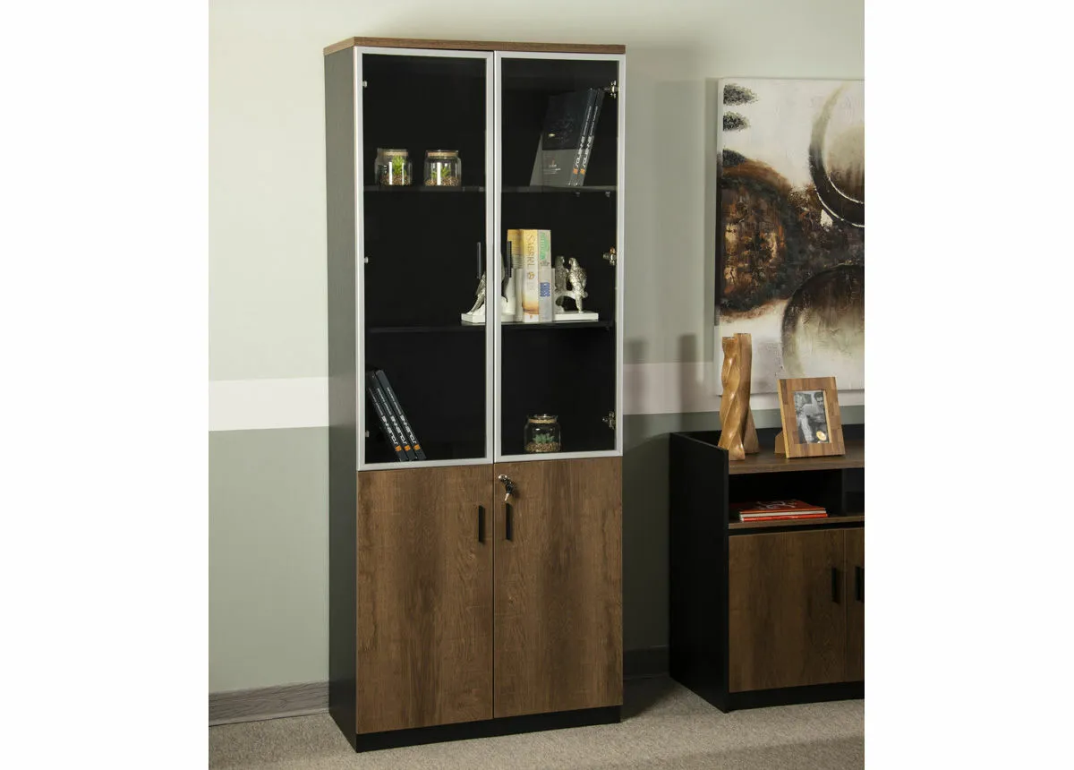 وحدة تخزين رفوف وأدراج بابين جانبية كيريا اسود وبني