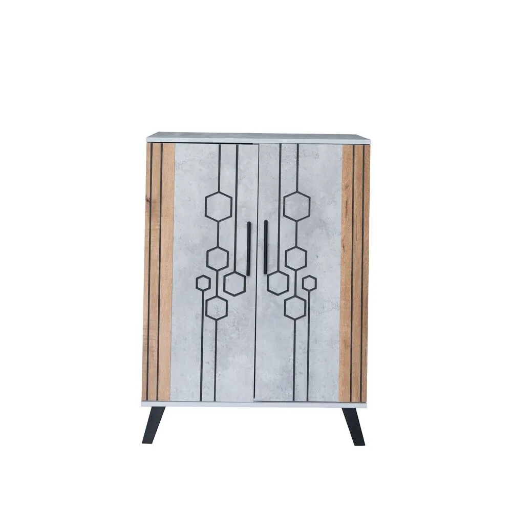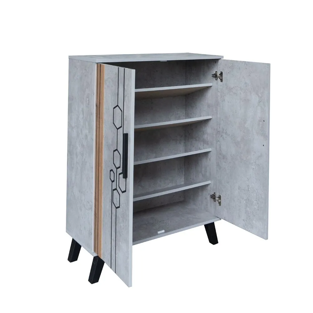 خزانة أحذية بابين خشب ماليزي ليندا - رمادي وخشبي