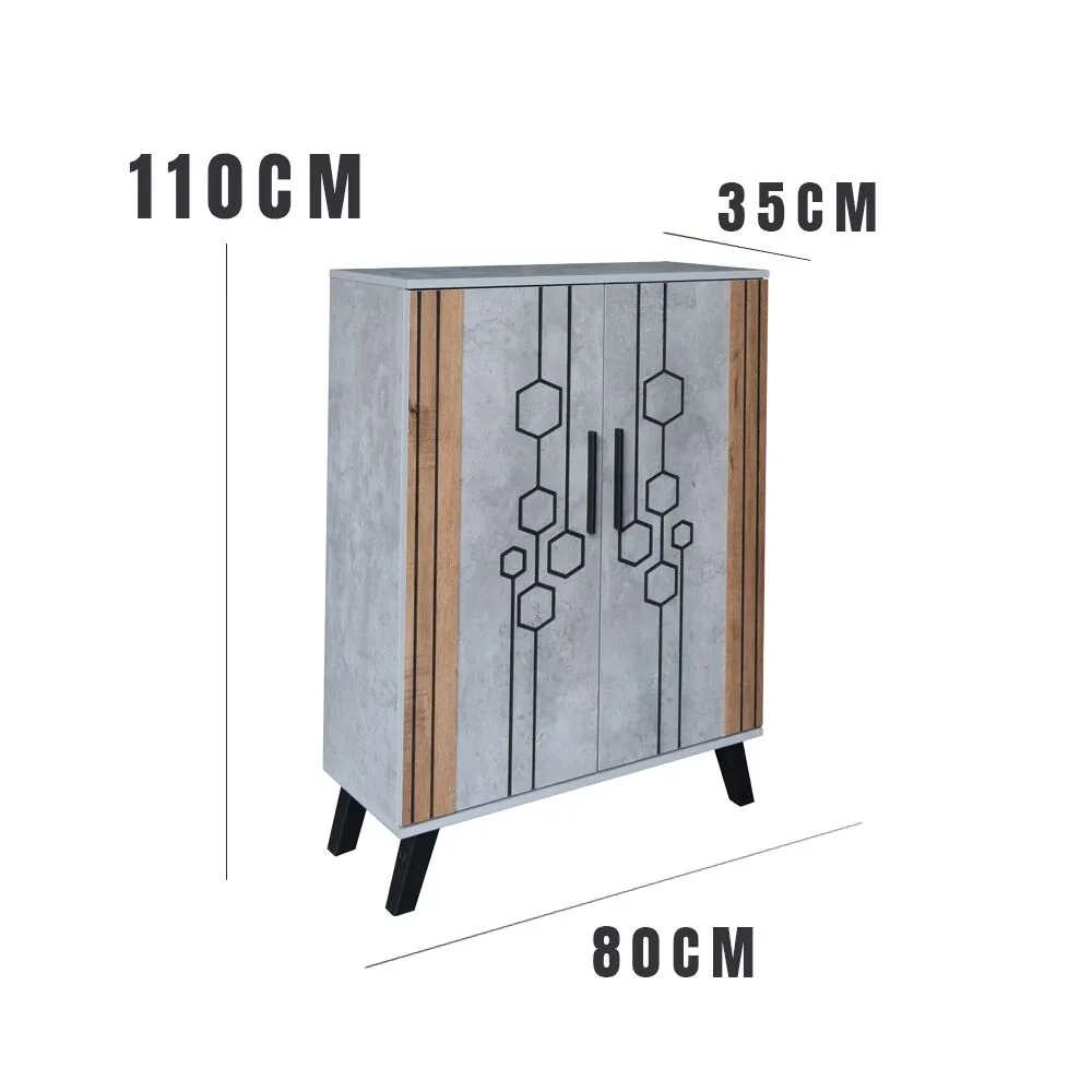 خزانة أحذية بتصميم عملي أنيق تتضمن بابين سهلي الفتح والإغلاق. تساعدك الخزانة في توضيب عدد مناسب من الأحذية بشكل أنيق بعيداً عن الأنظار لتوفر في المساحة وتضيف لمسة عصرية إلى أثاث منزلك. الخزانة مصنوعة من خامات عالية الجودة لتضمن كفاءة عالية لفترة طويلة.