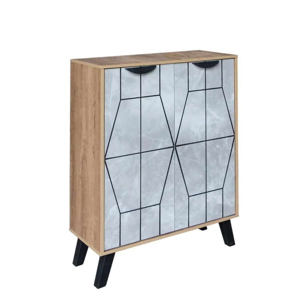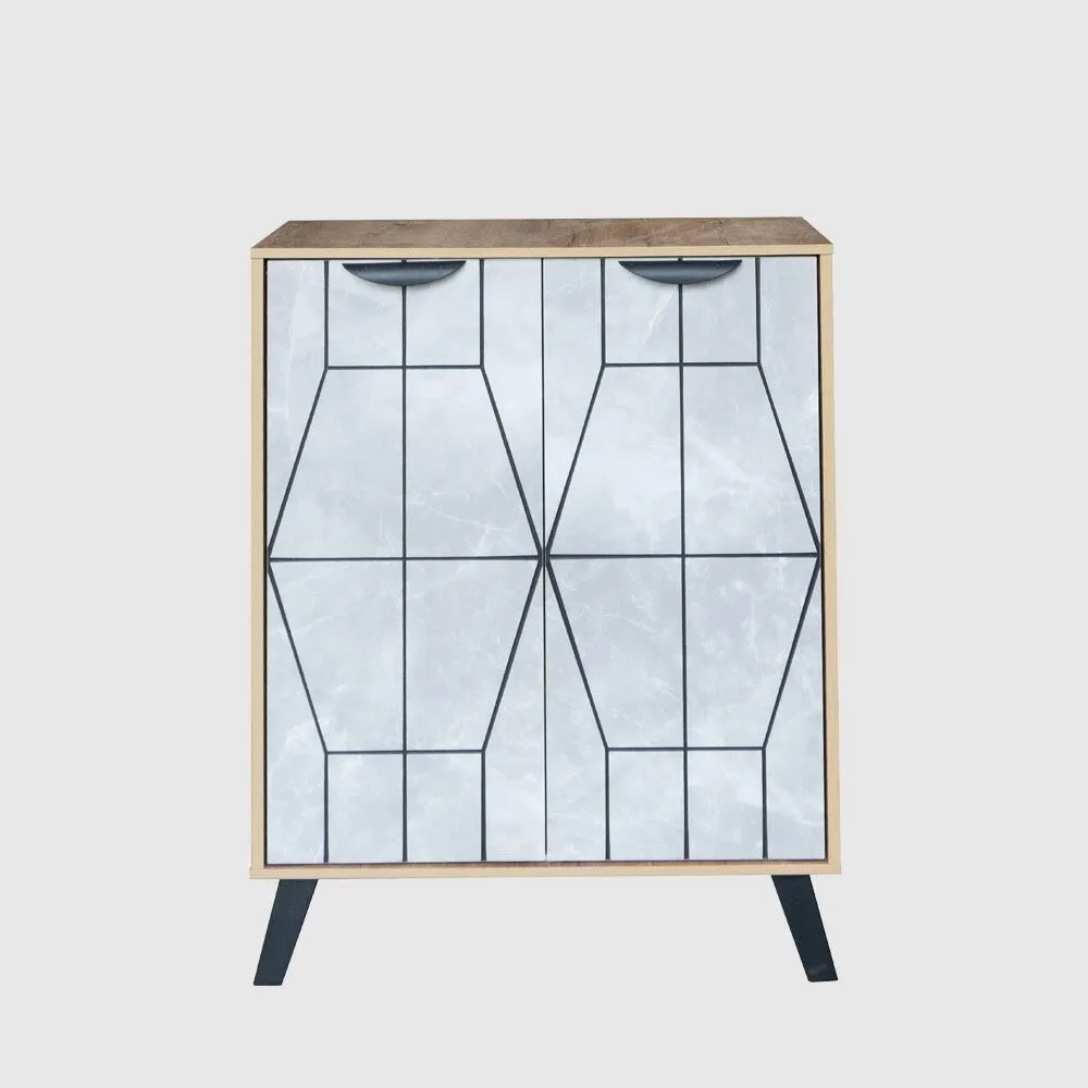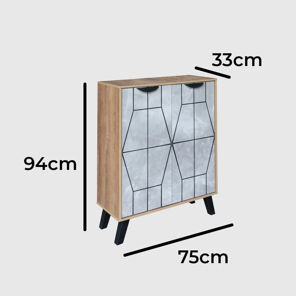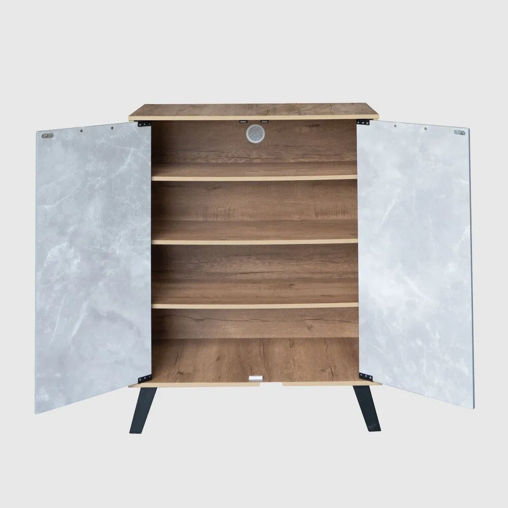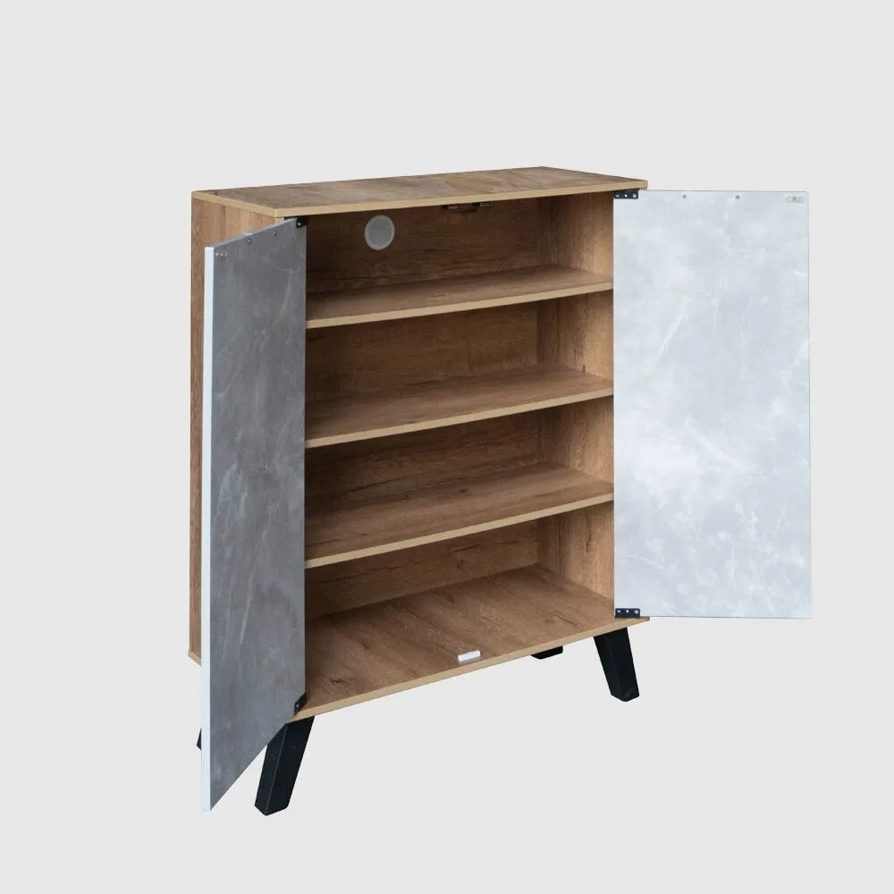 خزانة أحذية بابين خشب ماليزي 80 سم ماريتا - خشبي ورمادي