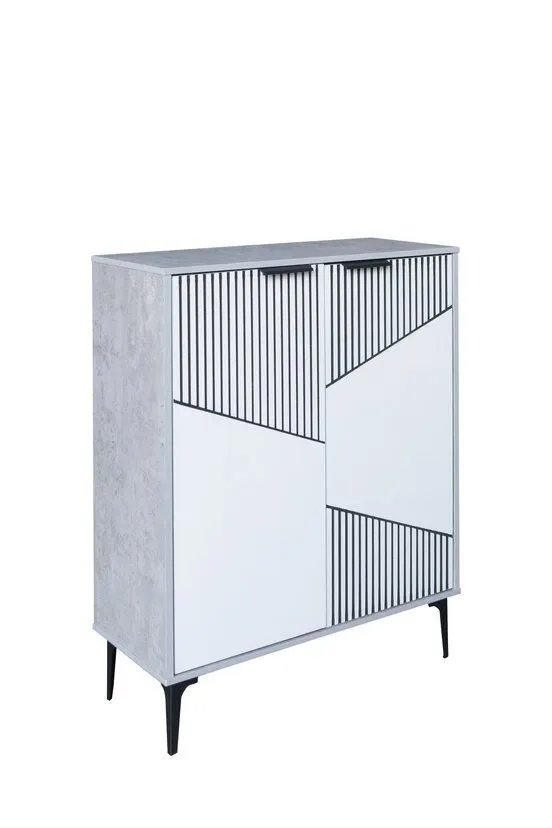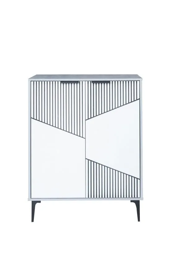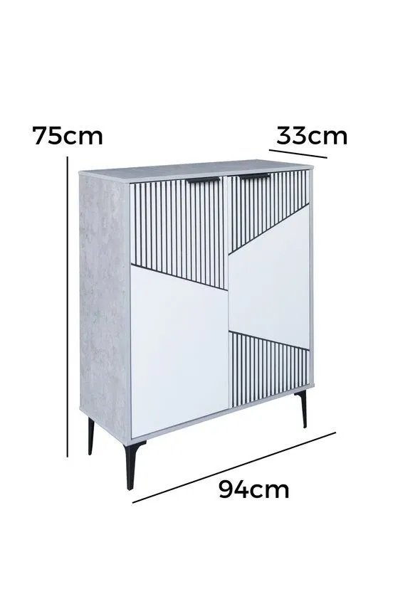 خزانة أحذية بابين خشب ماليزي روما - رمادي وأبيض