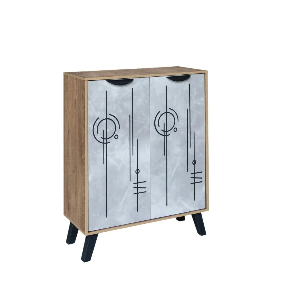 خزانة أحذية بابين خشب ماليزي 80 سم ماريتا - بني ورمادي