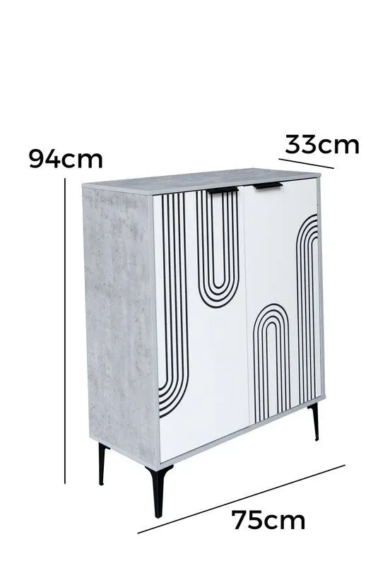 خزانة أحذية بابين خشب ماليزي موسكو - رمادي وأبيض