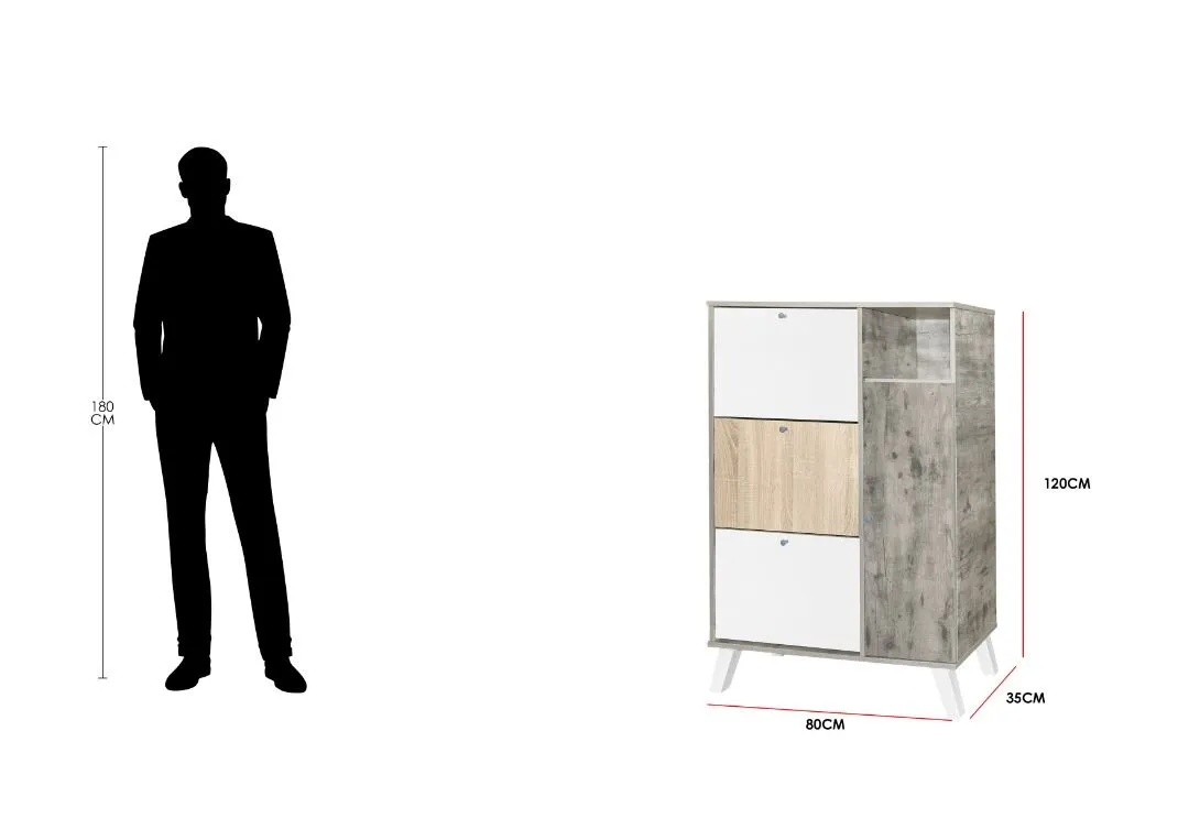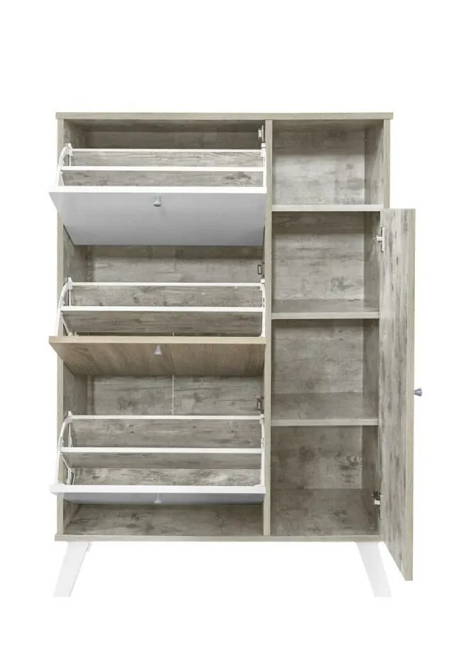 خزانة أحذية بتصميم عملي أنيق تتضمن عدة رفوف مغلقة بواسطة أبواب سهلة الفتح والإغلاق. تساعدك الخزانة في توضيب عدد مناسب من الأحذية بشكل أنيق بعيداً عن الأنظار لتوفر في المساحة وتضيف لمسة عصرية إلى أثاث منزلك. الخزانة مصنوعة من خامات عالية الجودة لتضمن كفاءة عالية لفترة طويلة.