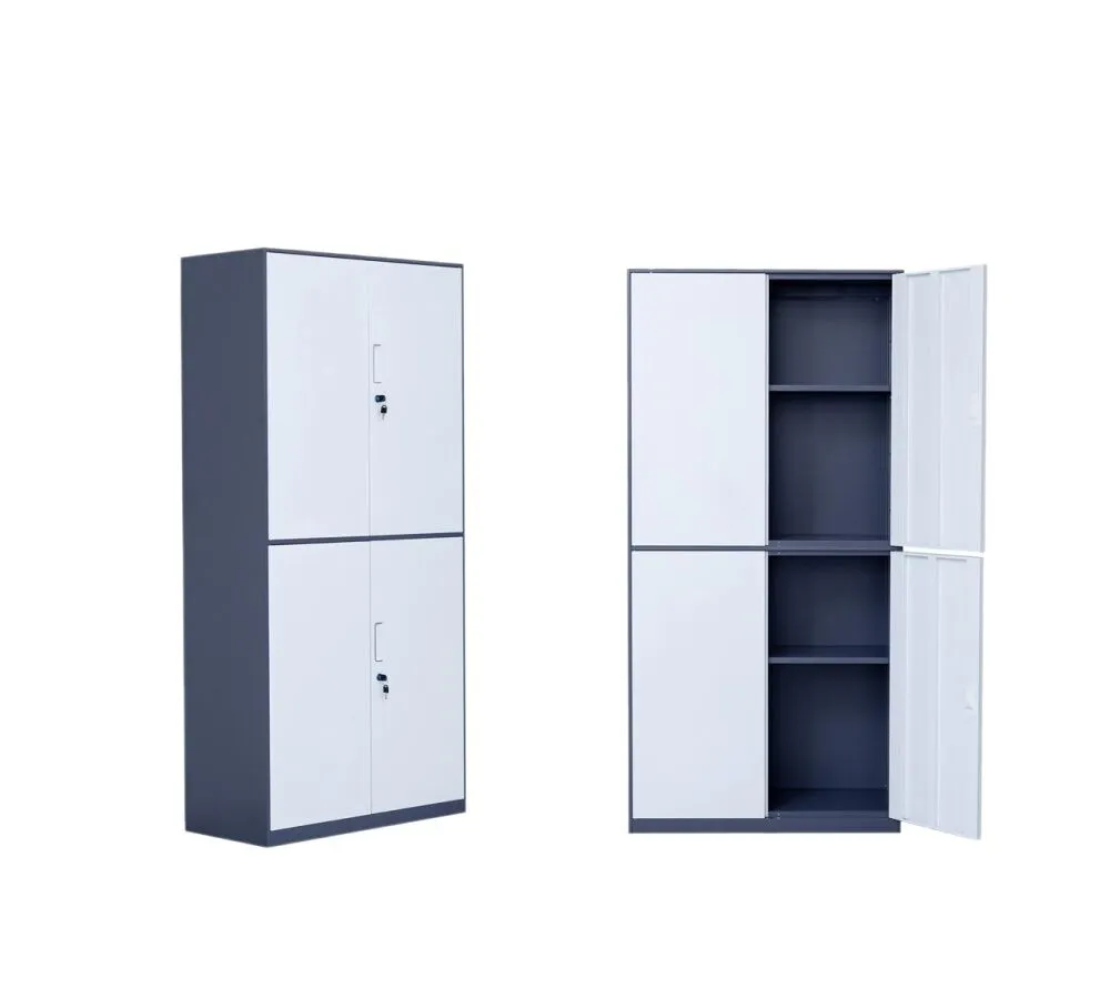 يتميز بتصميم أنيق مزدوج الأبواب من الأعلى والأسفل، بلونين متناسقين (رمادي وأبيض) يمنحان لمسة احترافية لأي مساحة مكتبية. مصنوع من الحديد المتين، ويوفر مساحة تخزين واسعة ومنظمة مع نظام قفل لكل قسم لخصوصية وأمان أكبر.