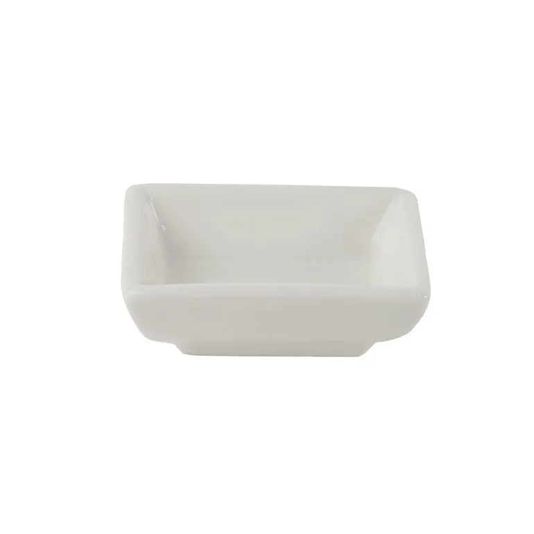 زبدية مربعة الشكل مصنوعة من البورسلان باللون الأبيض ذو عمق مناسب لإحتواء مختلف الأصناف, تعتبر إختيار مثالي لتقديم وتنسيق الأطعمة بشكل جميل ومنظم.