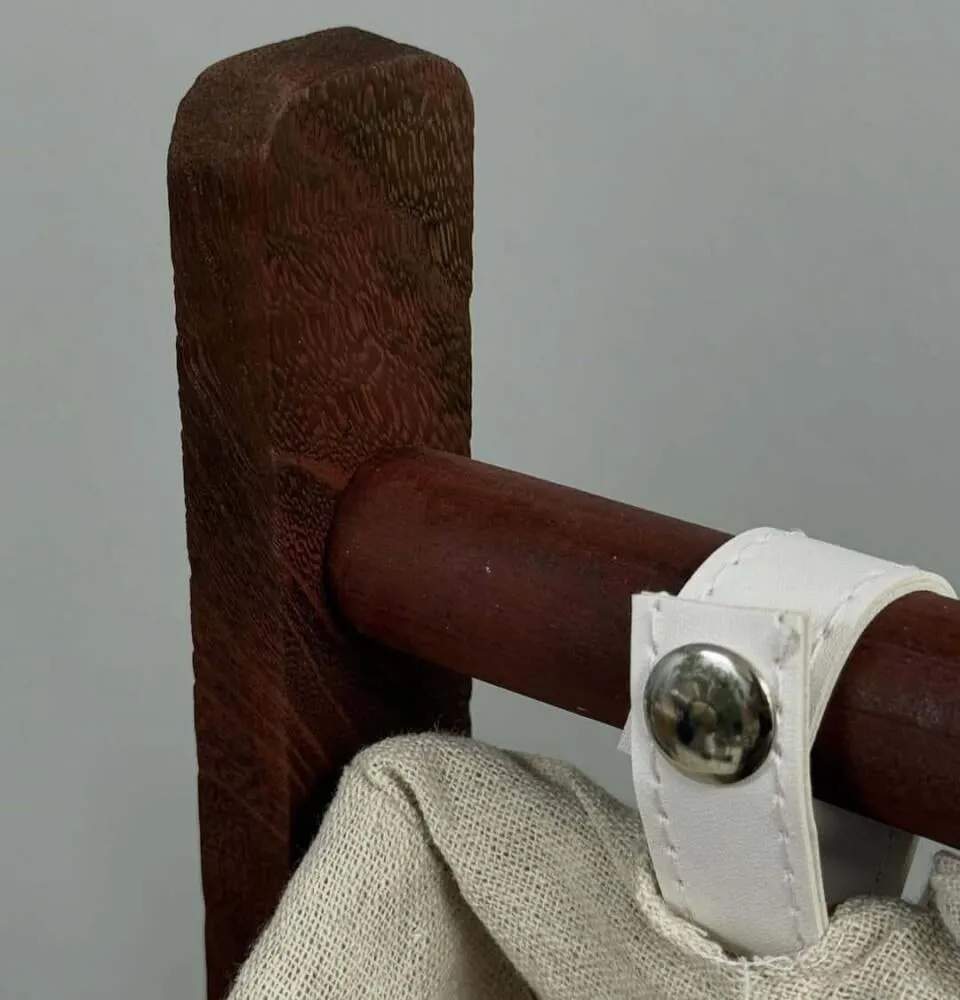 هذا الستاند الخشبي الأنيق يجمع بين الوظيفة والجمال بطريقة مدهشة! مصنوع بعناية من الخشب الطبيعي، ويحتوي على سلال واسعة مصنوعة يدويًا من الحبال القوية، مبطنة بالقماش الناعم للحفاظ على أغراضك بأمان وأناقة.