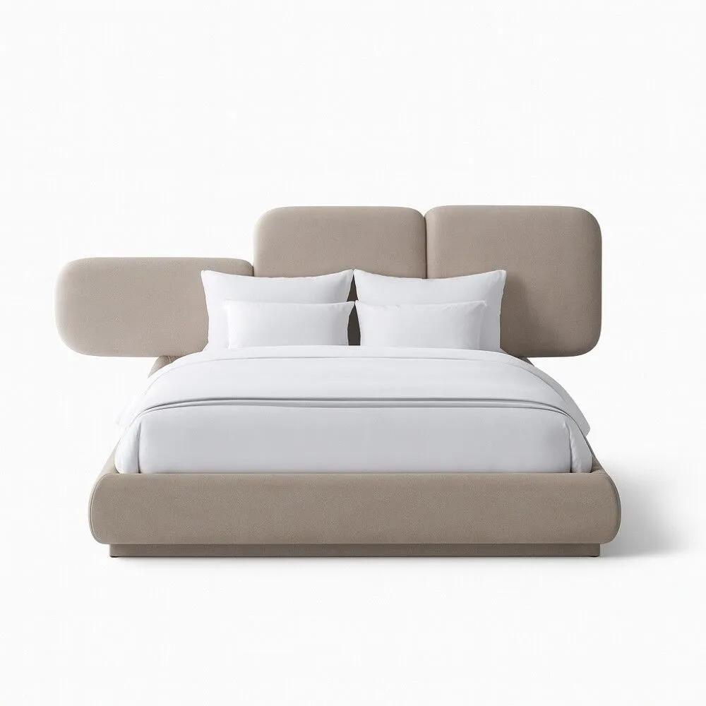 لون بني فاتح أنيق يضفي أجواء دافئة وراقية على غرفة النوم.التصميم:تصميم كينغ مريح بمظهر عصري يناسب مختلف أنماط ديكور غرف النوم.