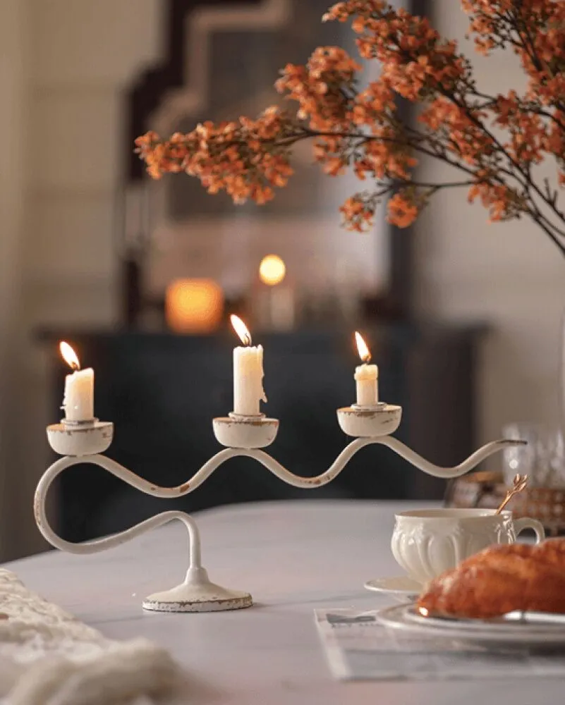 يعد هذا الشمعدان قطعة ديكور مثالية لغرف المعيشة، المداخل، أو حتى على مائدة العشاء، حيث يضيف تباينًا جميلًا بين البساطة والفخامة. هيكل الحديد الأبيض المتين يضمن استقرار الشموع ويدوم طويلاً مع الاستخدام المتكرر.