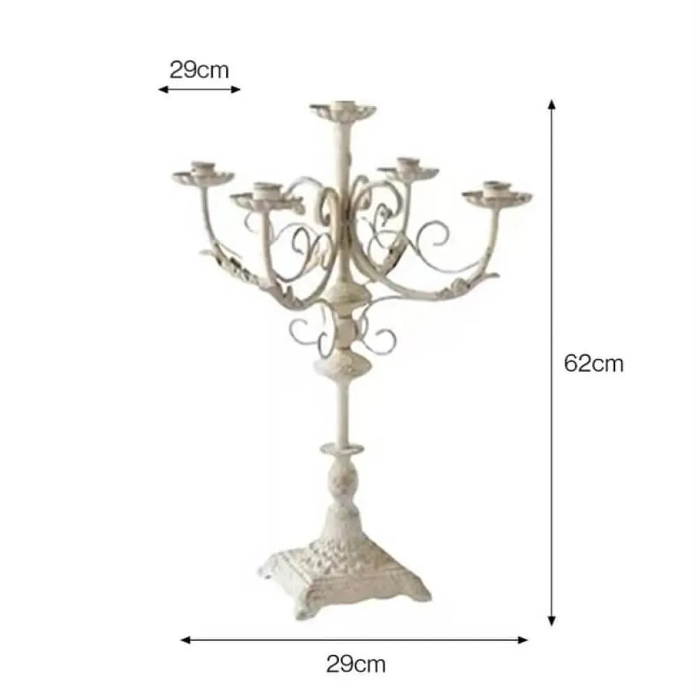 شمعدان حديد انتيك هو قطعة ديكور أنيقة بتصميم كلاسيكي وفخم. مصنوع من الحديد بلون أبيض عتيق