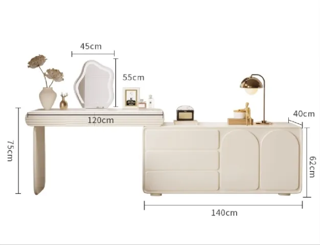 أبعاد المنتج ارتفاع وحدة الادراج: 62 - العرض: 140 - العمق: 40 - ارتفاع الطاولة: 75 - العرض: 120