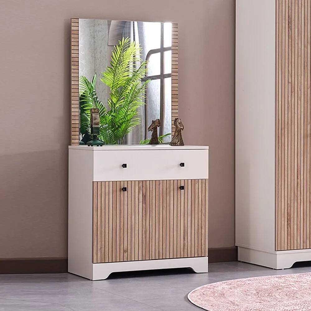 | يتضمن الطقم | 1 x طاولة تزيين - 1 x مرآة |