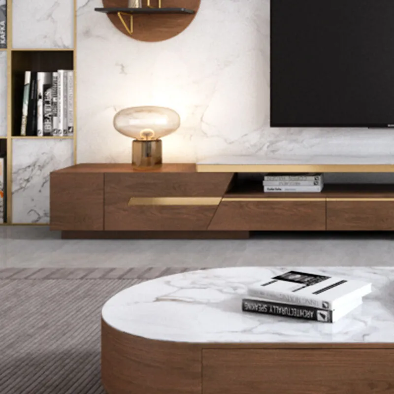 طاولة تلفزيون بأدراج ومساحة تخزين ذات لون بني فاتح أنيق