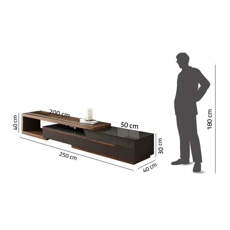 أبعاد طاولة التلفزيون الجزء الخشبي العرض 200سم الارتفاع 40 سم الجزء الاسود العرض 50سم الارتفاع 30سم العرض الكلي 250سم ,العمق 40سم, الارتفاع 40 سم