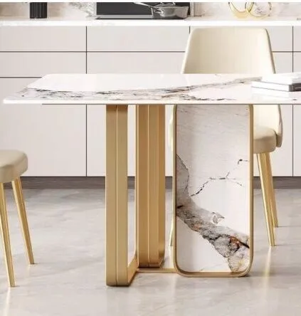 طاولة طعام مودرن جوليان 6 أشخاص - لون أبيض رخامي وذهبي