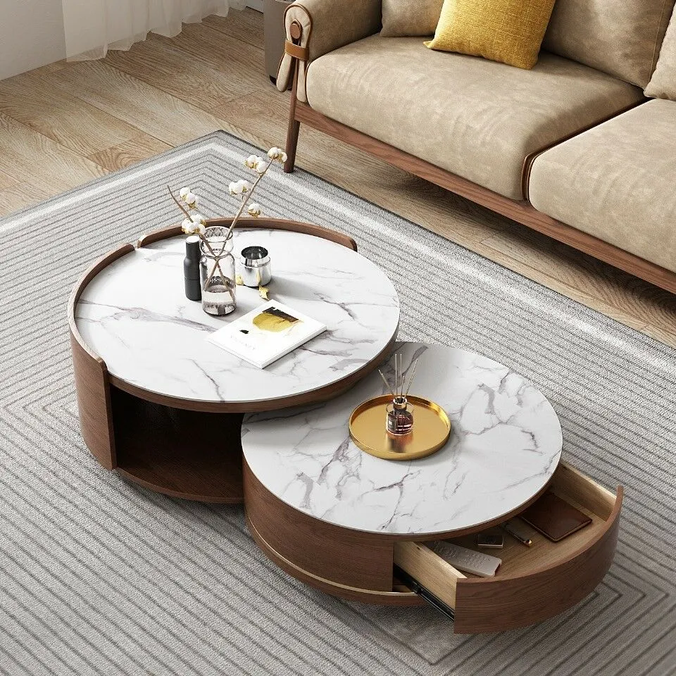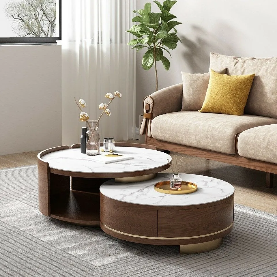 • تصميم متداخل: طاولتين دائريتين بحجمين مختلفين لتوفير المساحة.