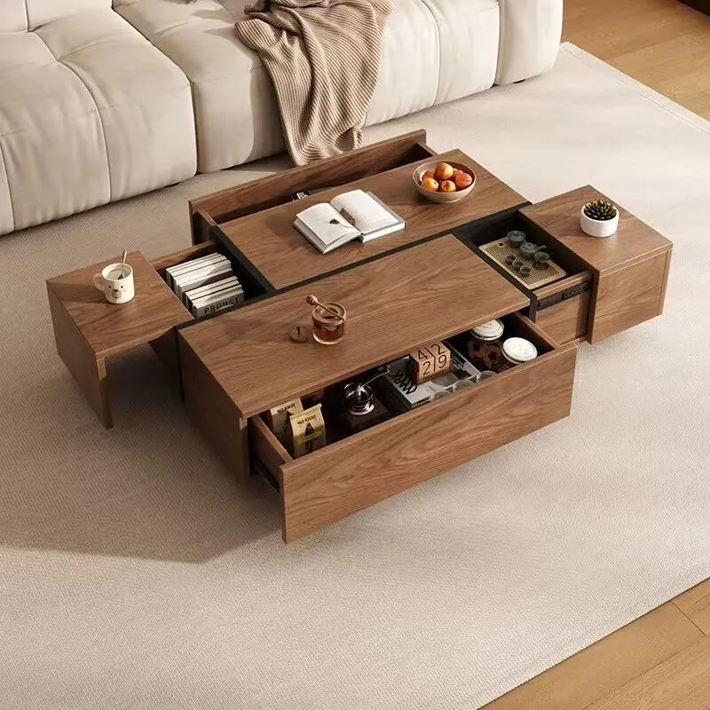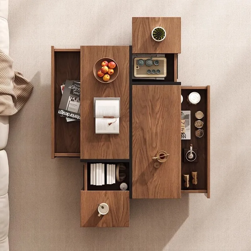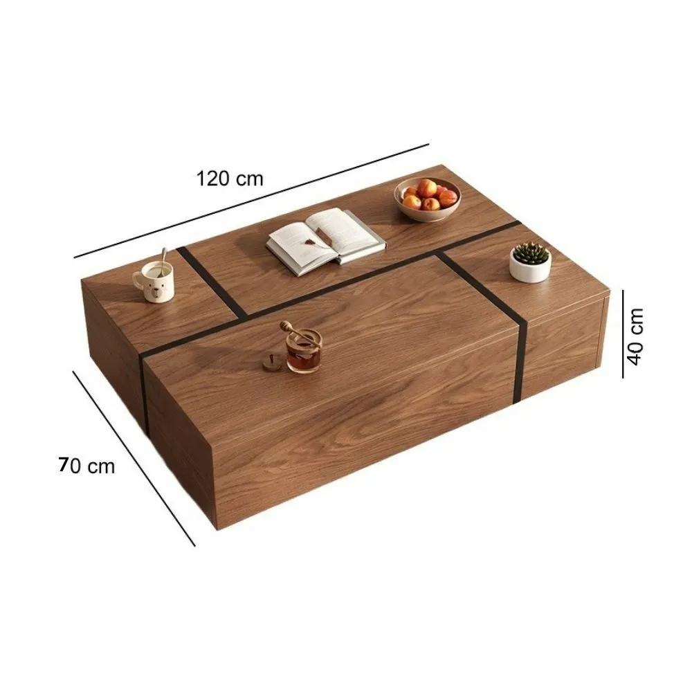مساحة تخزين مبتكرة: تحتوي الطاولة على مساحة تخزين عملية مخفية في تصميمها، مما يتيح لك تنظيم المجلات، أجهزة التحكم عن بُعد، أو أي أغراض صغيرة أخرى بطريقة مرتبة وسهلة الوصول.