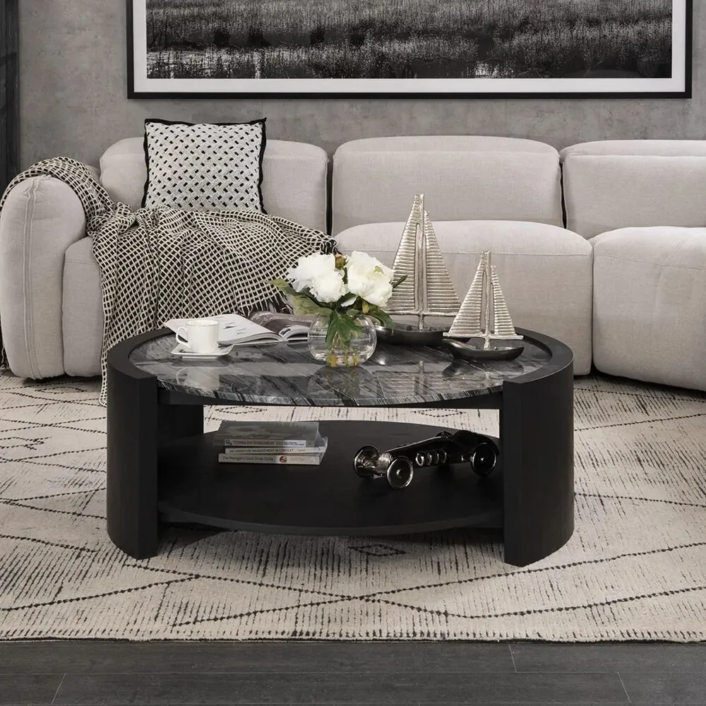 طاولة قهوة رخام صناعي من قطعتين سيليزيا - اسود