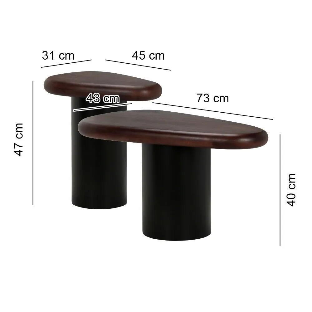 ابعاد الطاولة القهوة العرض 73 - العمق 43 - الارتفاع 40 ابعاد الطاولة الجانبية العرض 45 - العمق 31 - الارتفاع 47 |