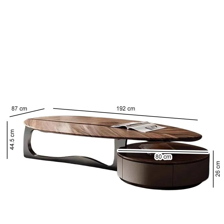 الطاولة الاولى : العرض 192- العمق 87 - الارتفاع 44.5 الطاولة الثانية : القطر 80 - الارتفاع 26 سم |