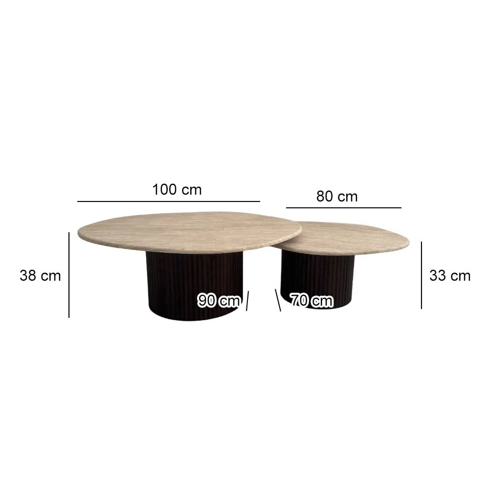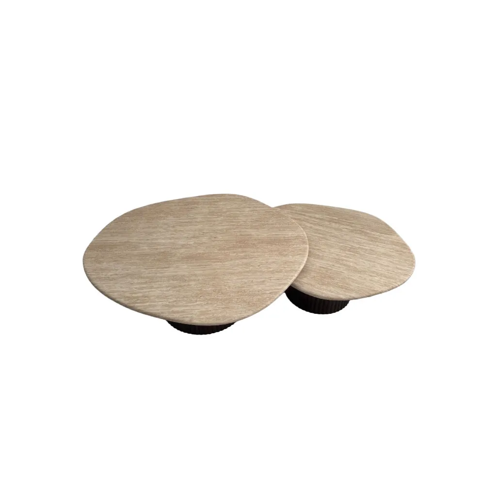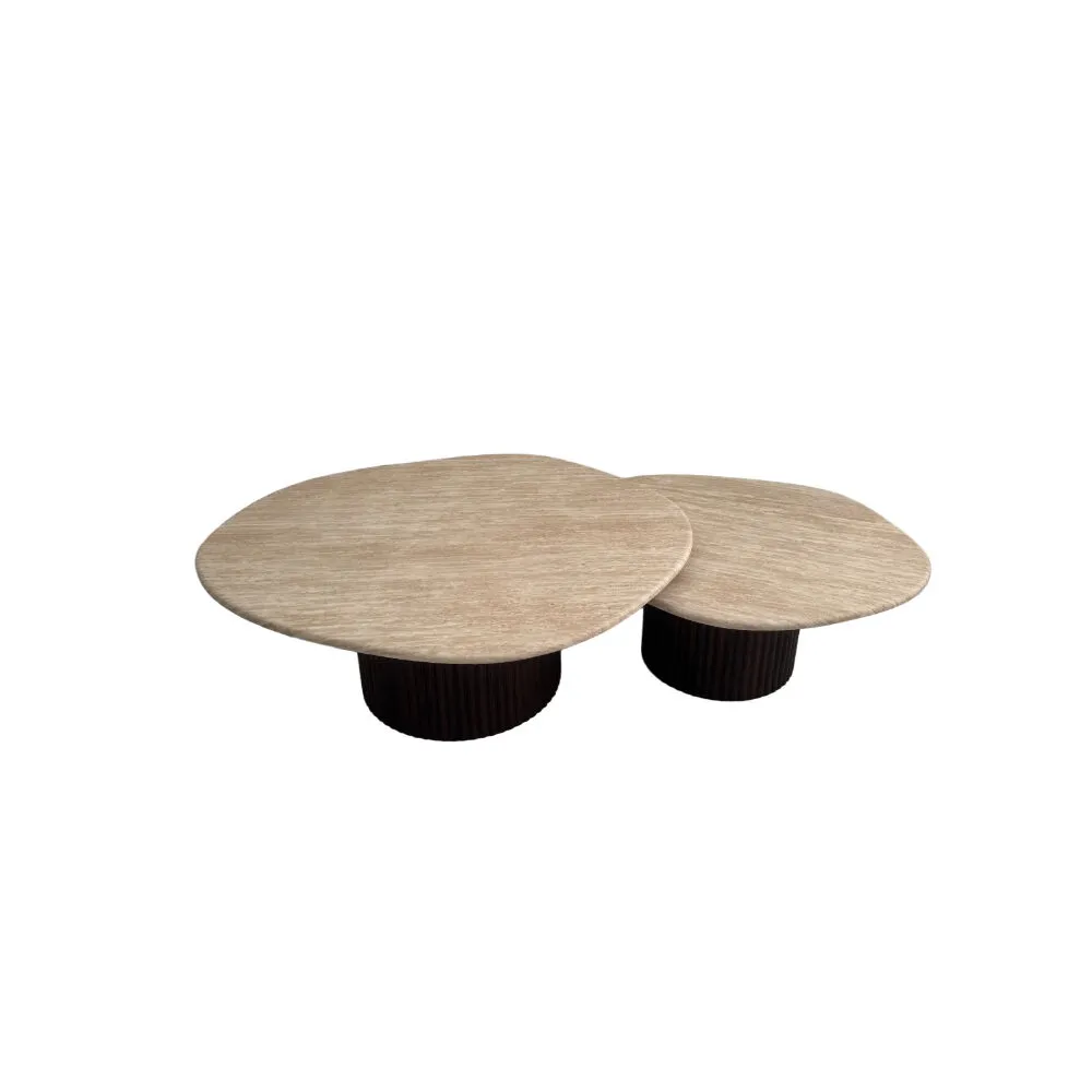 تميّزي في ديكور غرفة الجلوس مع هذه الطاولة المكونة من قطعتين باحجام مختلفة المصممة بذوق فني عصري. تأتي بسطح أملس طبيعي . مثالية لتجمع عائلي أو ضيافة أنيقة، حيث تجمع بين الأناقة والعملية. تصميمها الدافئ والمتناسق يجعلها نقطة جذب في أي مساحة عصرية أو كلاسيكية.