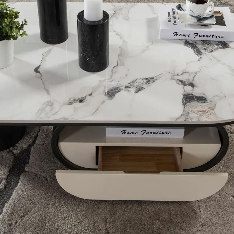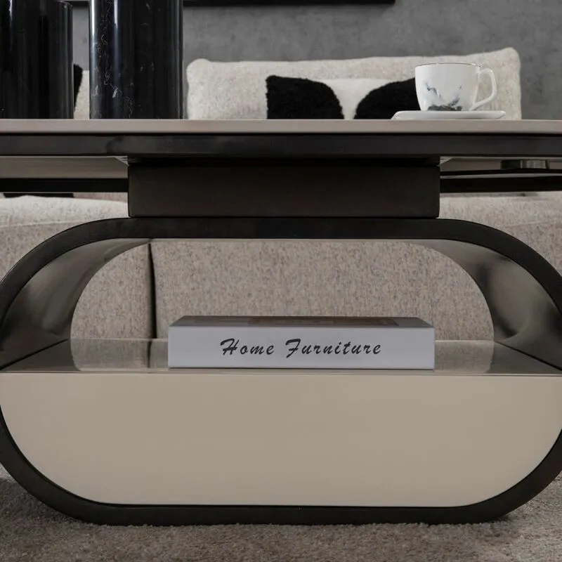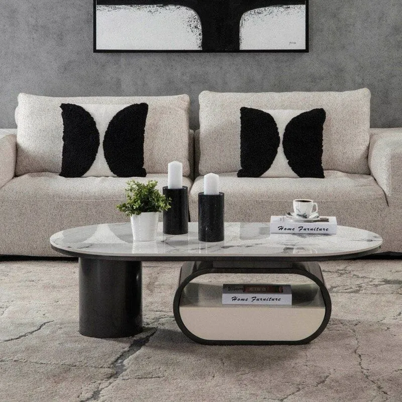 طاولة قهوة رخام صناعي من قطعتين سيليزيا - اسود
