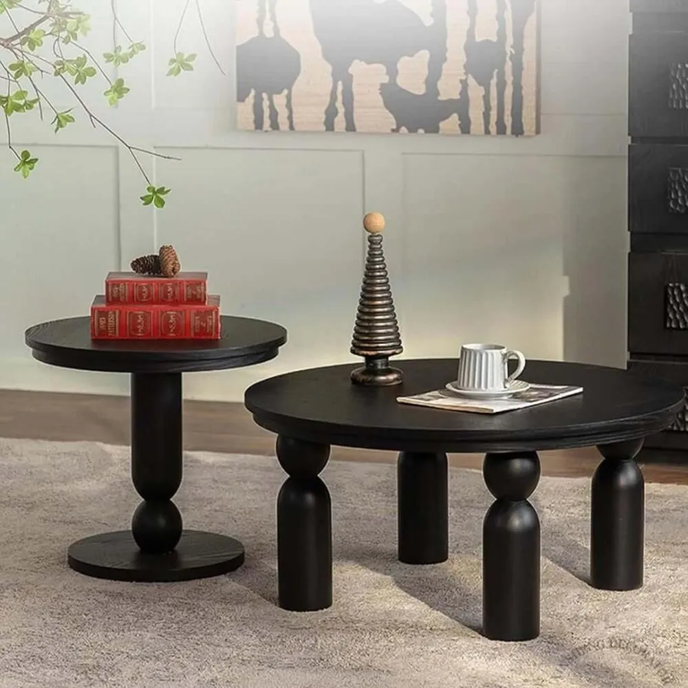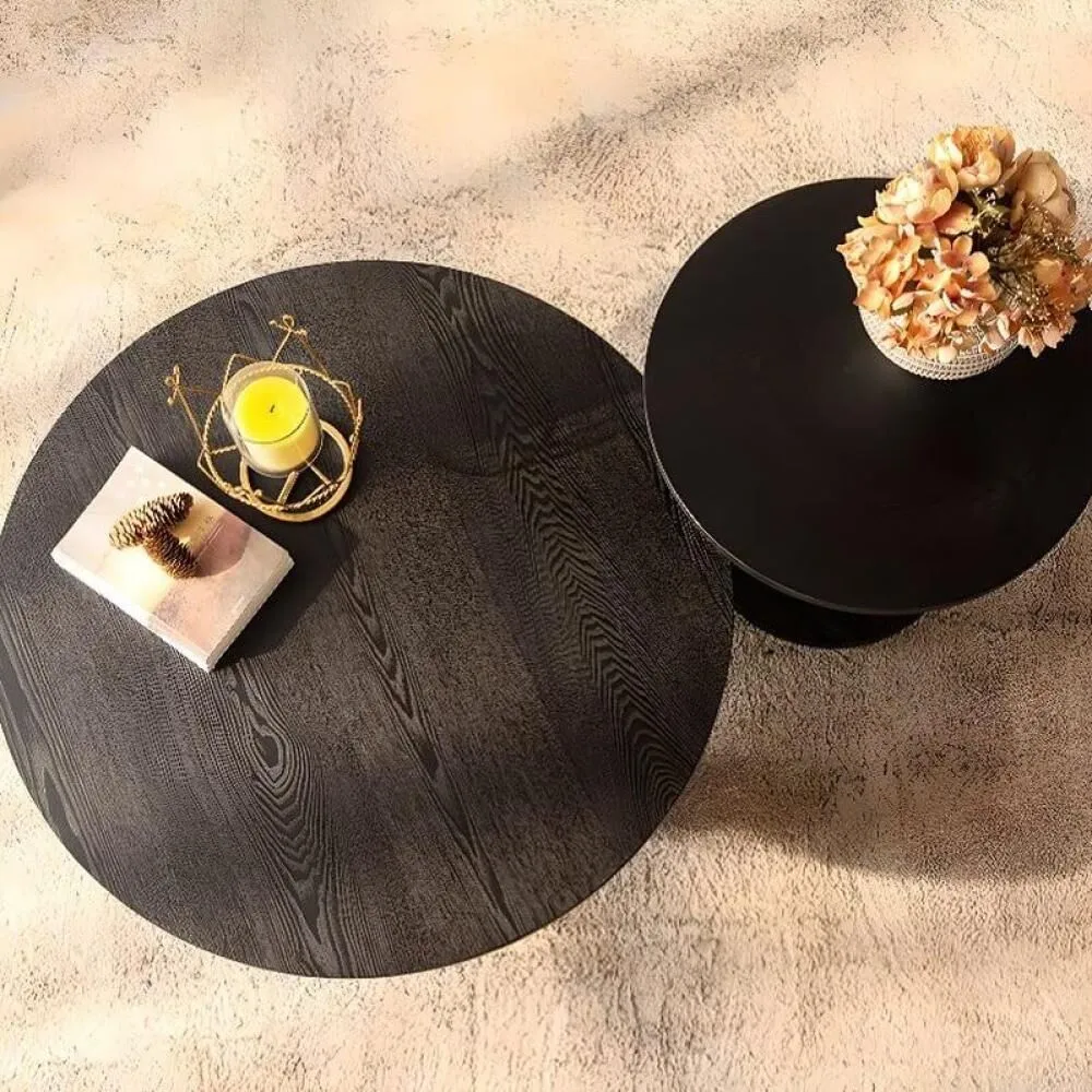 طاولة قهوة متداخلة بونيرا قطعتين - بني واسود