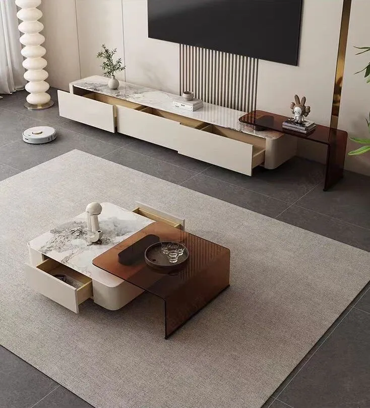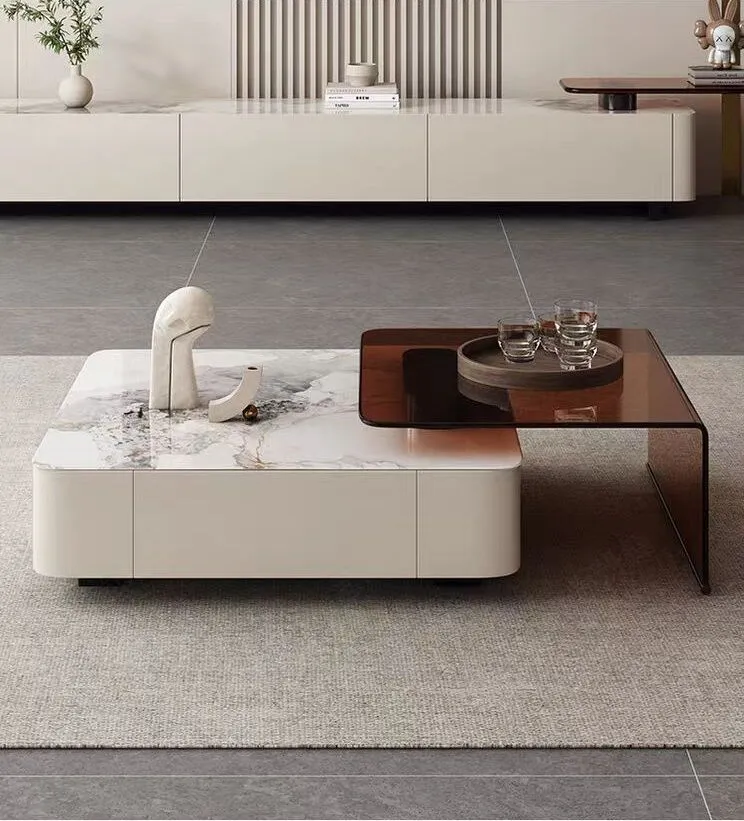 اجعل من غرفة معيشتك مكانًا مليئًا بالأناقة والعملية مع طاولة قهوة رخام "مودرن".