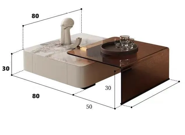 أبعاد طاولة القهوة العرض: 80 سم، الارتفاع: 30 سم، الطول: 80 سم