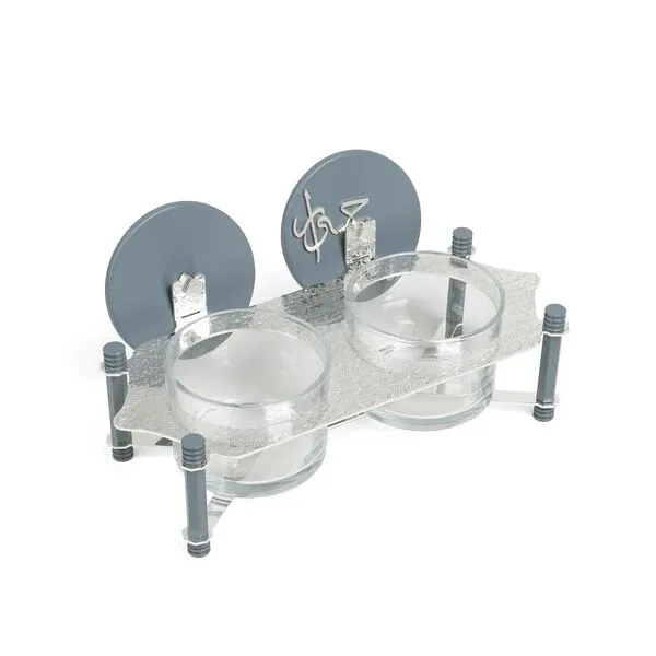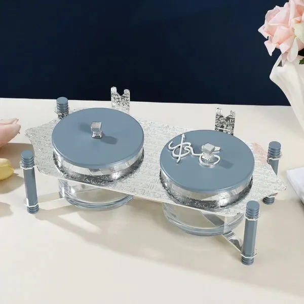 طقم تقديم مكسرات قطعتين مع صينية من جوار - ازرق وفضي