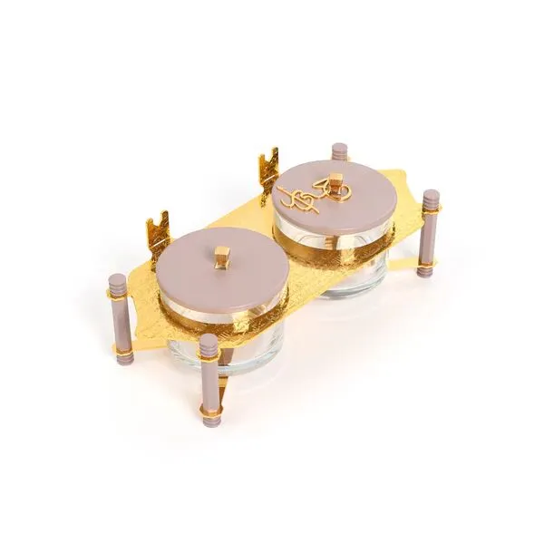 طقم تقديم مكسرات قطعتين مع صينية تقدم تجربة فريدة لعشاق المكسرات ، بتصميم فاخر يجمع بين الأناقة والتميز، تضيف لمسة من الفخامة والجمال إلى مناسباتكم الخاصة ولحظات الاسترخاء، بفضل تصميمها الراقي وتفاصيلها الدقيقة، تعد قطعة ديكورية ساحرة تضفي طابعًا مميزًا على طاولة الضيافة، مما يجعلها خيارًا مثاليًا كهدية فريدة للأحبة.