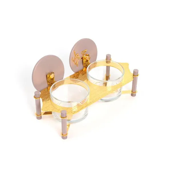 طقم تقديم مكسرات قطعتين مع صينية من جوار - بنفسجي وذهبي