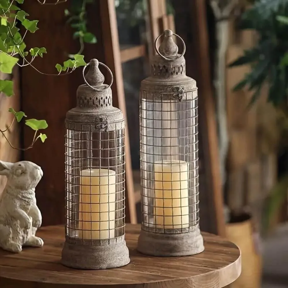 حامل شموع بتصميم قفص – تشطيب عتيق أضف لمسة من السحر الكلاسيكي والأناقة العتيقة إلى ديكور منزلك مع هذا الحامل المميز للشموع. يأتي بتصميم قفص معدني .هيكل حديدي بتفاصيل دقيقة وتشطيب ريفي عتيق يضفي على المكان دفء وهدوء لا مثيل له.
