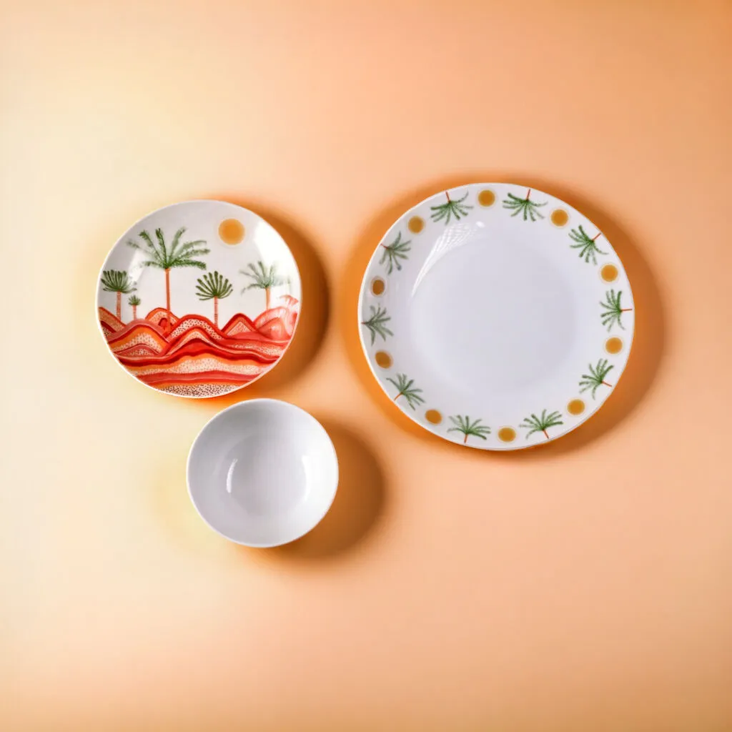 • قدمي العشاء اللذيذ بأسلوب فاخر لإبهار ضيوفك باختيار طقم صحون العشاء من مجموعة صحارى الفاخرة، بألوان ونقوش ساحرة، مع تفاصيل مميزة ذات لمسة فخامة عالية.