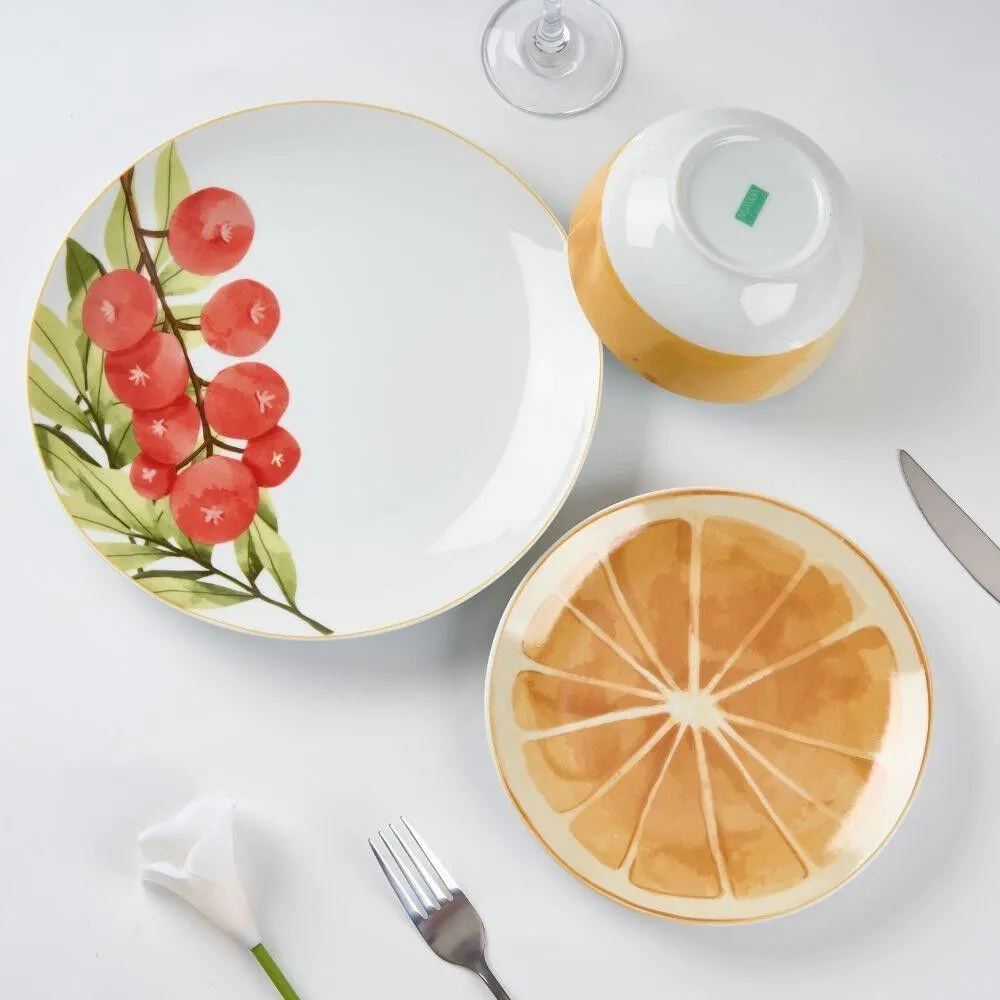 طقم صحون عشاء من مجموعة تروبيكا 12 قطعة - ابيض ومتعدد الالوان