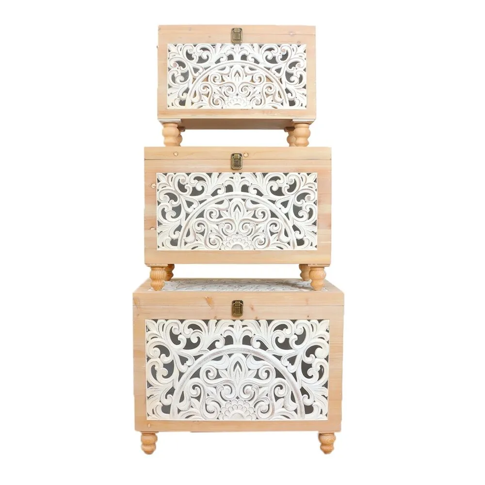 أنت تراجع:طقم صناديق خشب كينزو - بيج وابيض