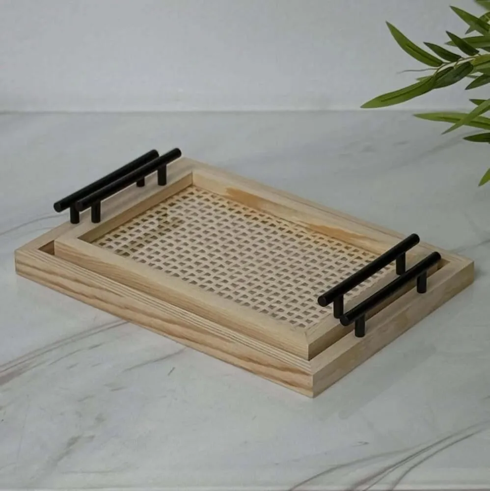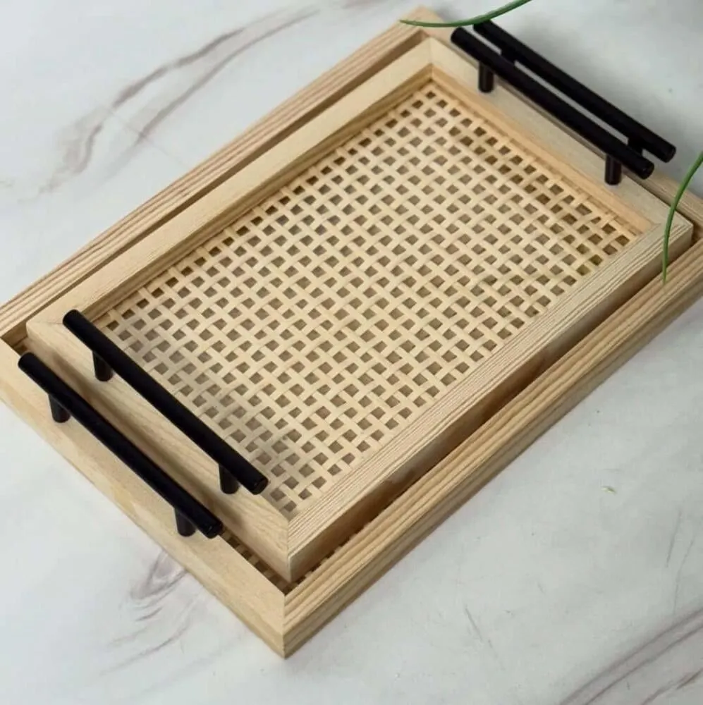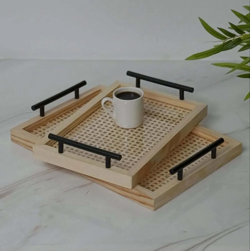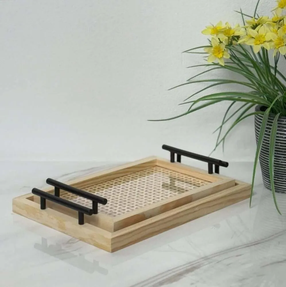 طقم صينية خشب واكريليك وايدي حديد واتيكس