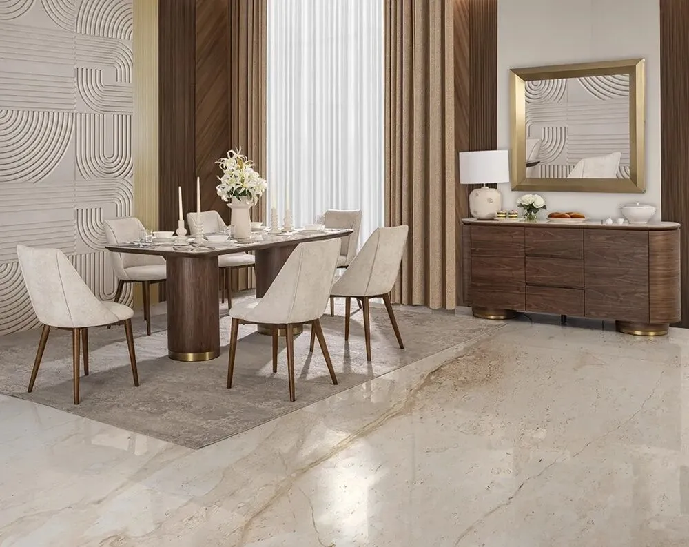 | يتضمن الطقم | 1 طاولة 1 قاعدة بوفيه 6 كرسي فقط |