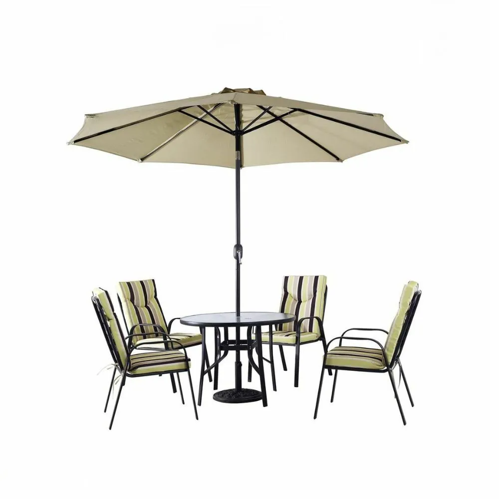يتضمن الطقم 1 طاولة طعام مع مظلة - 4 كراسي