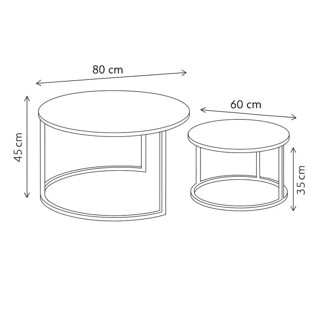 الطاولة الاكبر: القطر 80 سم - الارتفاع 45 سم الطاولة الاصغر : القطر 60 سم - الارتفاع 35 سم |